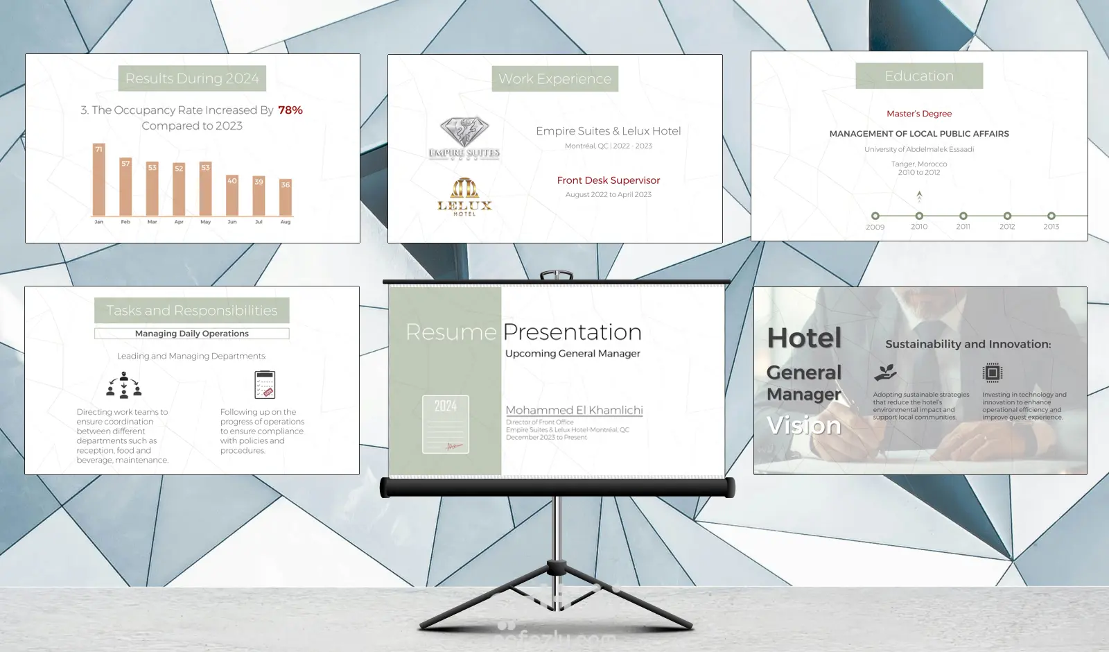 مرحباً، أعرض لكم نماذج أعمال لعروض تقديمية إحترافية 2D، أتمنى أن تنال إعجابكم. هذه النماذج ترونها في صور مصغرة وفي فيديو يوتيوب لمشاهدة المؤثرات. النماذج صممت بعضها بمحتوى واحد في الشريحة، وبعضها متعددة المحتوى في الشريحة وهي متعبة جداً نظراً لتداخل المحتوى فوق بعضه وضرورة ضبط المؤثرات بدقة كي يظهر كل جزء من محتوى الشريحة في الوقت الصحيح. النماذج هي: ■ عرض تقديمي لعرض تسويق تجاري - ديكور بتصميم أنيق ومؤثرات معتدلة. ■ عرض تقديمي لإحصائيات عن البن اليمني بتصميم بسيط جداً. ■ عرض تقديمي لأكاديمية طيران بتصميم خفيف وأنيق. ■ عرض تقديمي لدورة في البرامج المكتبية بتصميم بسيط ومؤثرات حركية كثيرة. ■ عرض تقديمي لسيرة ذاتية حولتها إلى عرض تقديمي لعميل سوف يعرض سيرته الذاتية لمناقشتها عند المقابلة، التصميم أنيق وخفيف مع الكثير من المؤثرات الحركية، هذا العمل تجدون فيديو للمؤثرات الحركية على يوتيوب ضمن فيديو يشمل بعض من أعمالي في 2025 وهو العرض رقم 4، وهذا رابطه: https://youtu.be/xh4rr1rwNmc?t=287