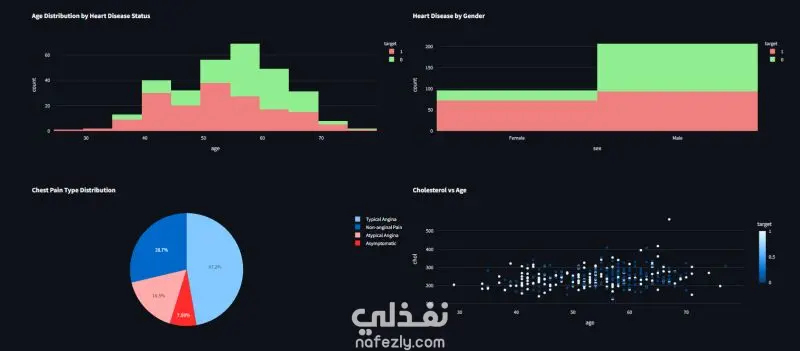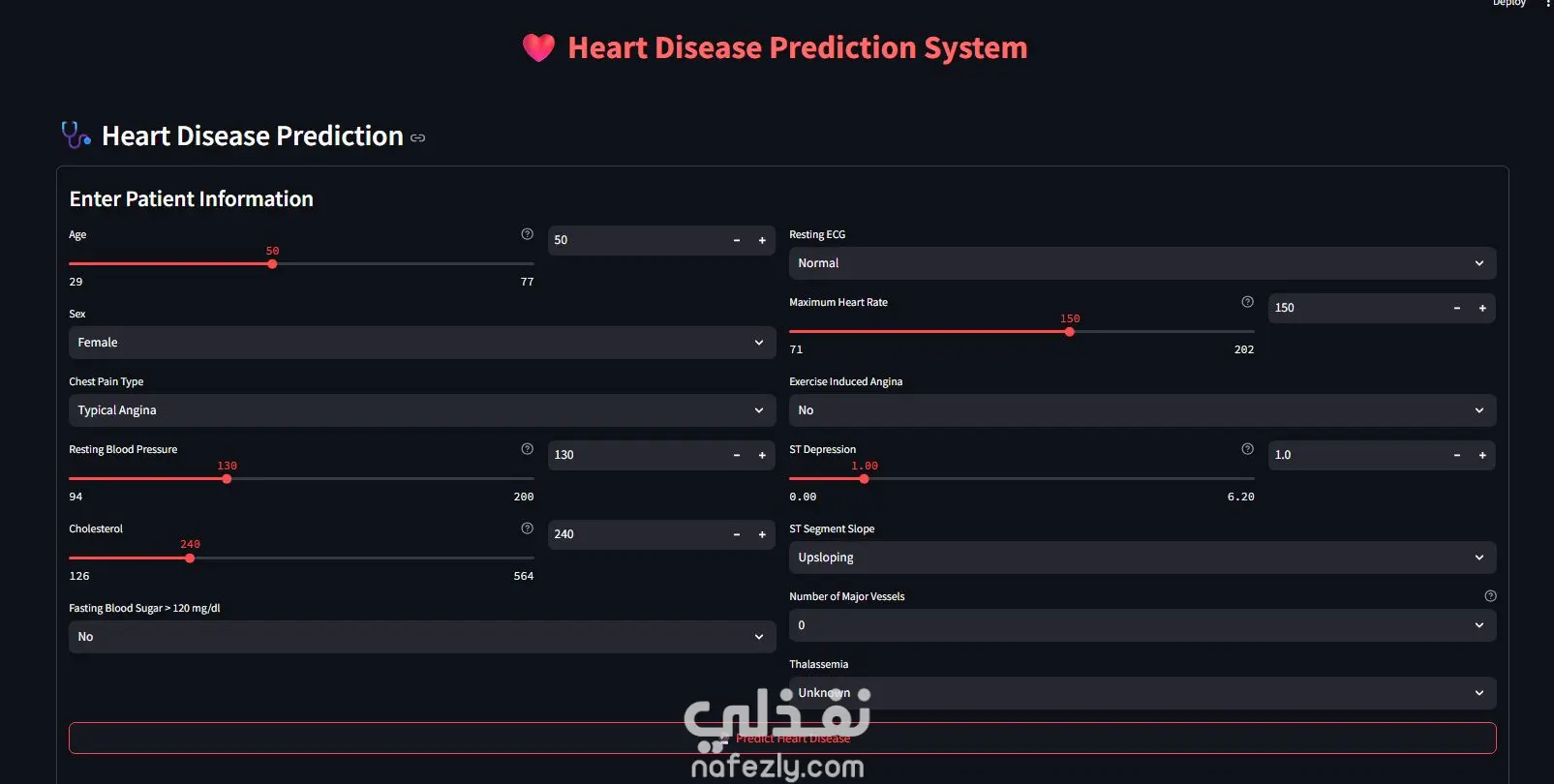 الوصف: هذا المشروع عبارة عن تطبيق ويب لتعلم الآلة (Machine Learning) تم بناؤه باستخدام Streamlit. يتنبأ باحتمالية الإصابة بأمراض القلب بناءً على البيانات الصحية التي يقدمها المستخدم. يشمل المشروع تدريب النموذج، وتقييمه، والتمثيل البصري للبيانات، بالإضافة إلى نشره باستخدام Ngrok لإتاحة الوصول العام إليه.