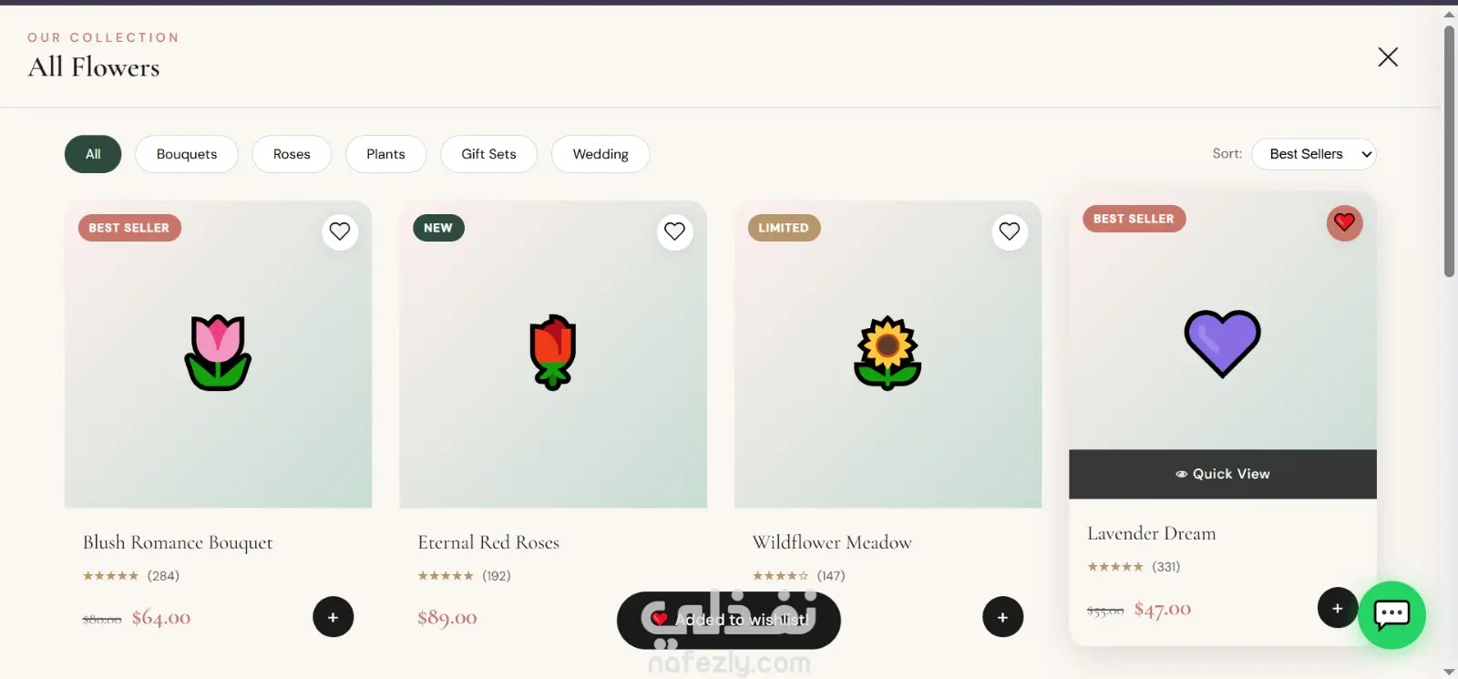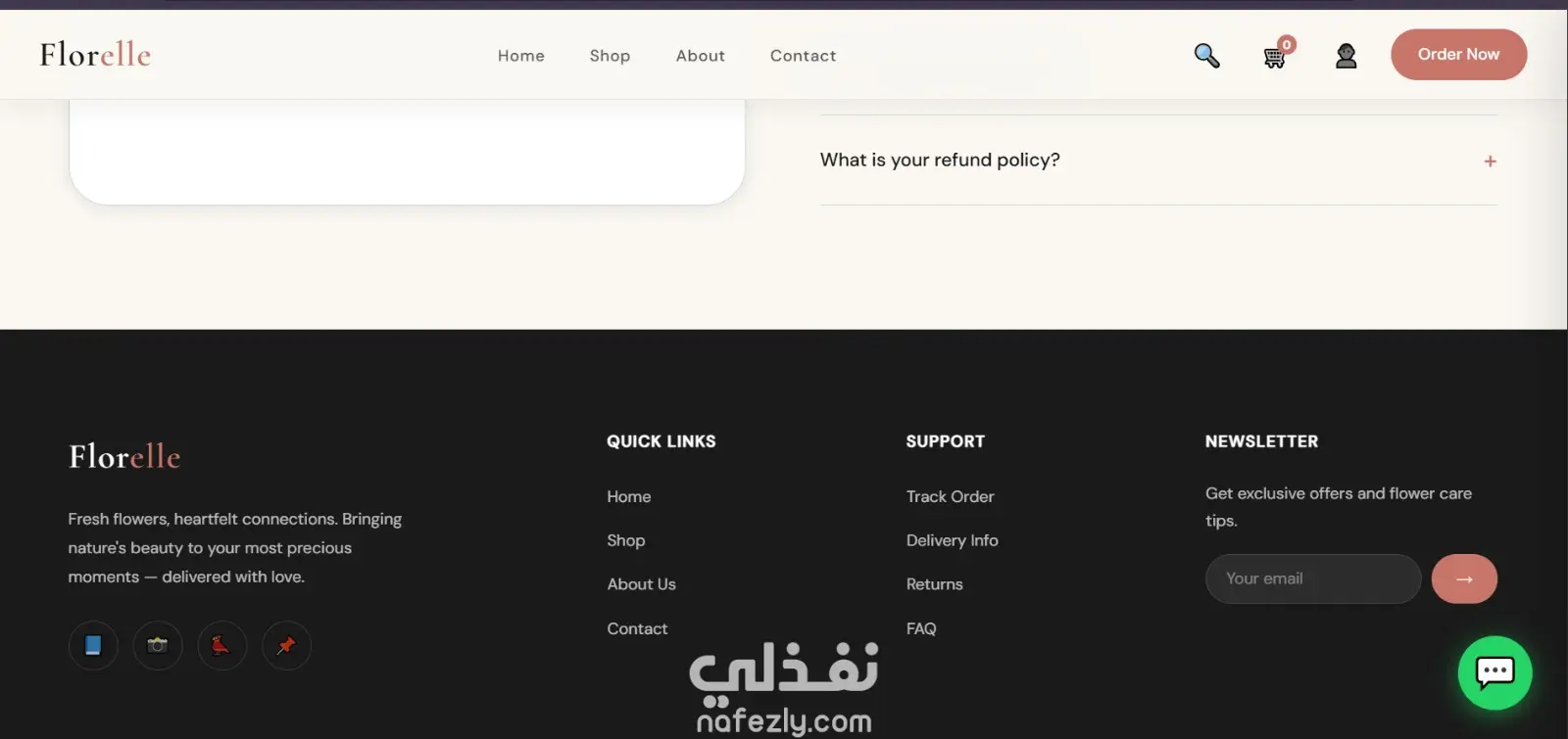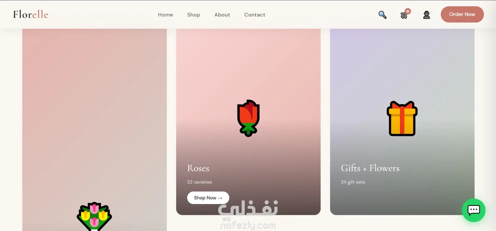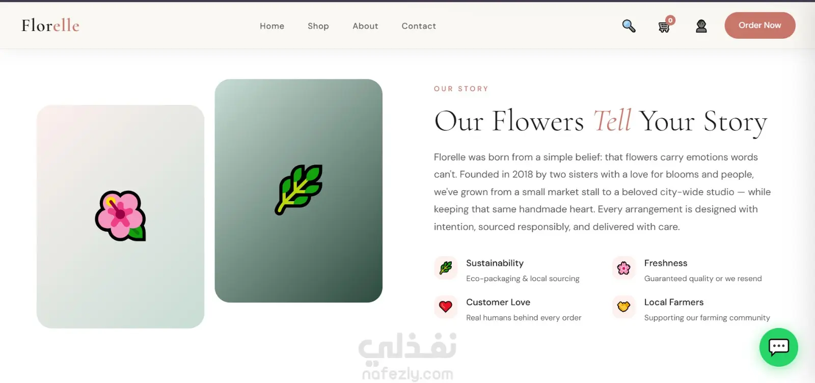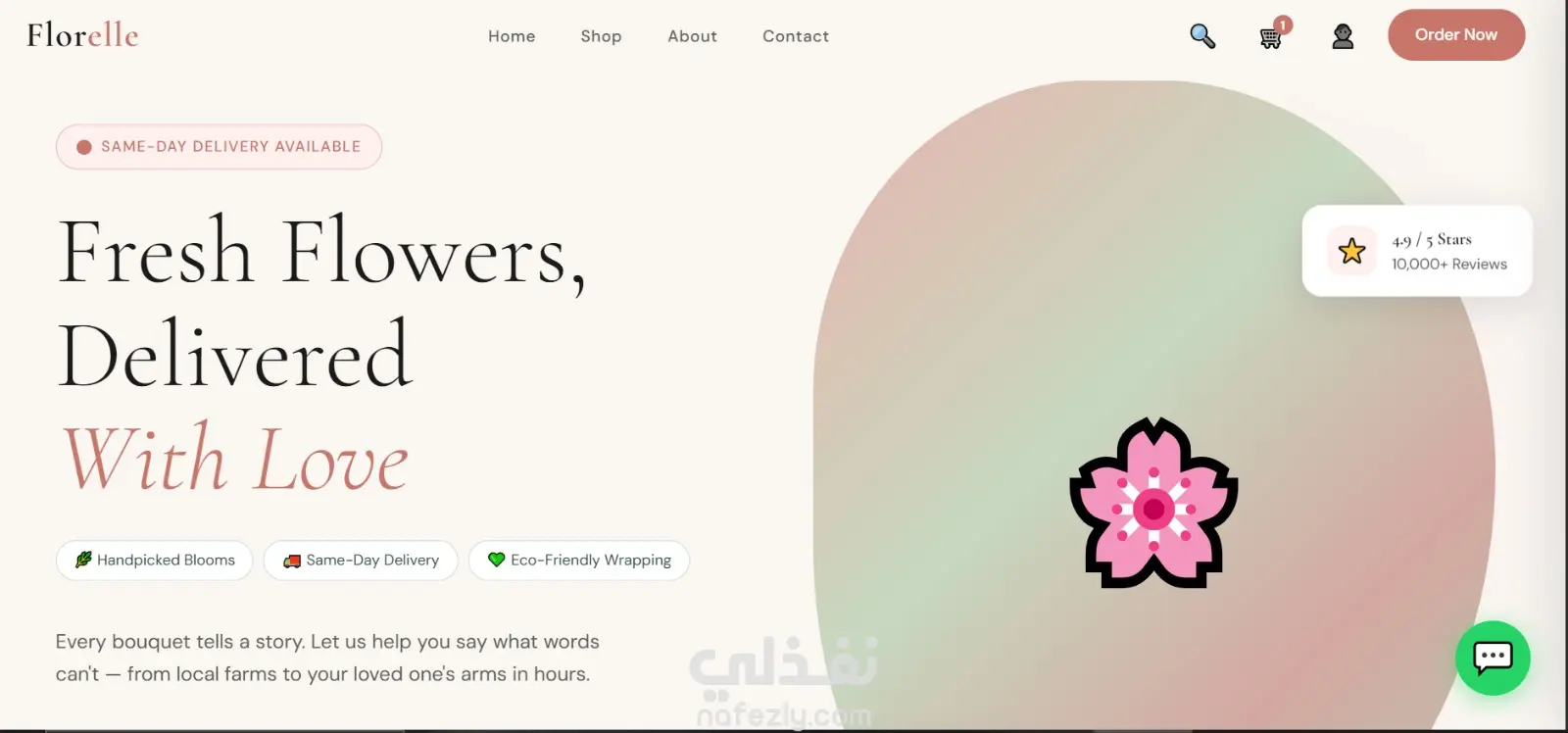 موقع إلكتروني احترافي لبيع وتوصيل الزهور بتصميم عصري وهادئ يركز على إبراز المنتج وتجربة المستخدم. الصفحة الرئيسية مصممة بأسلوب جذاب يعكس الإحساس بالحب والاهتمام بالتفاصيل، مع واجهة بسيطة وسهلة الاستخدام.