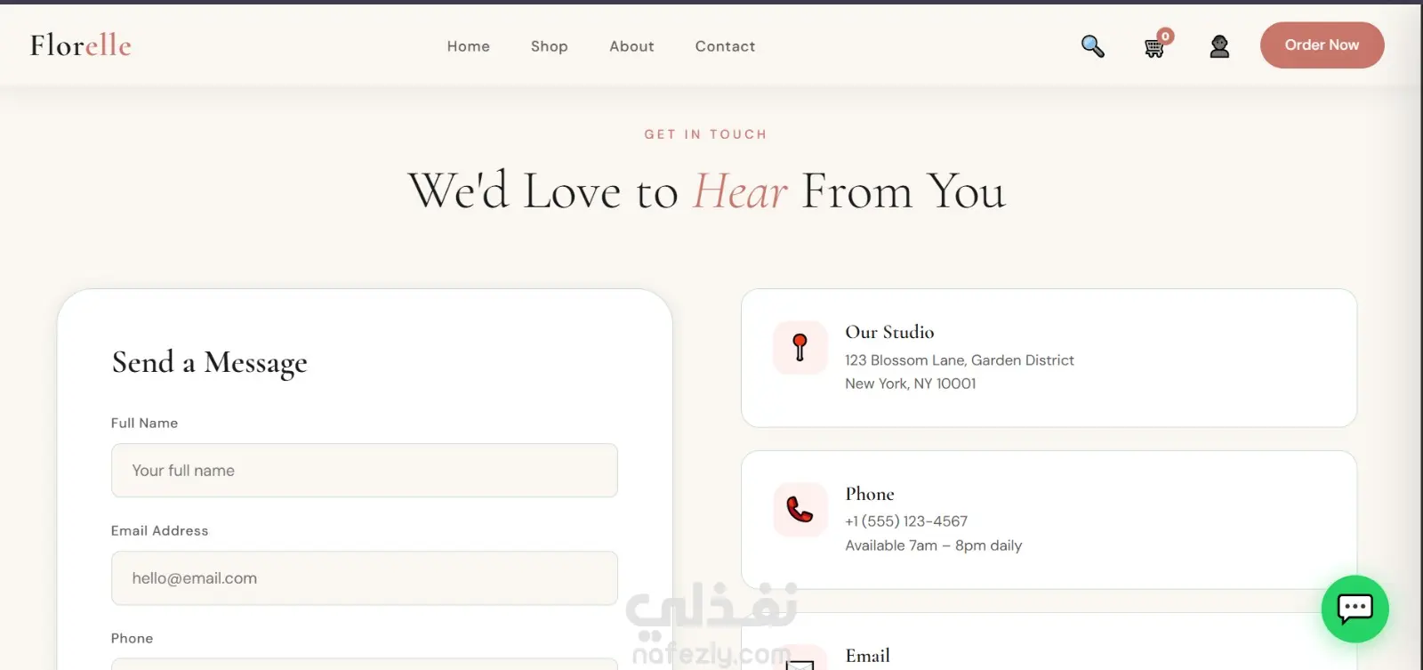 تصميم أنيق بألوان هادئة تناسب مجال الزهور والهدايا.