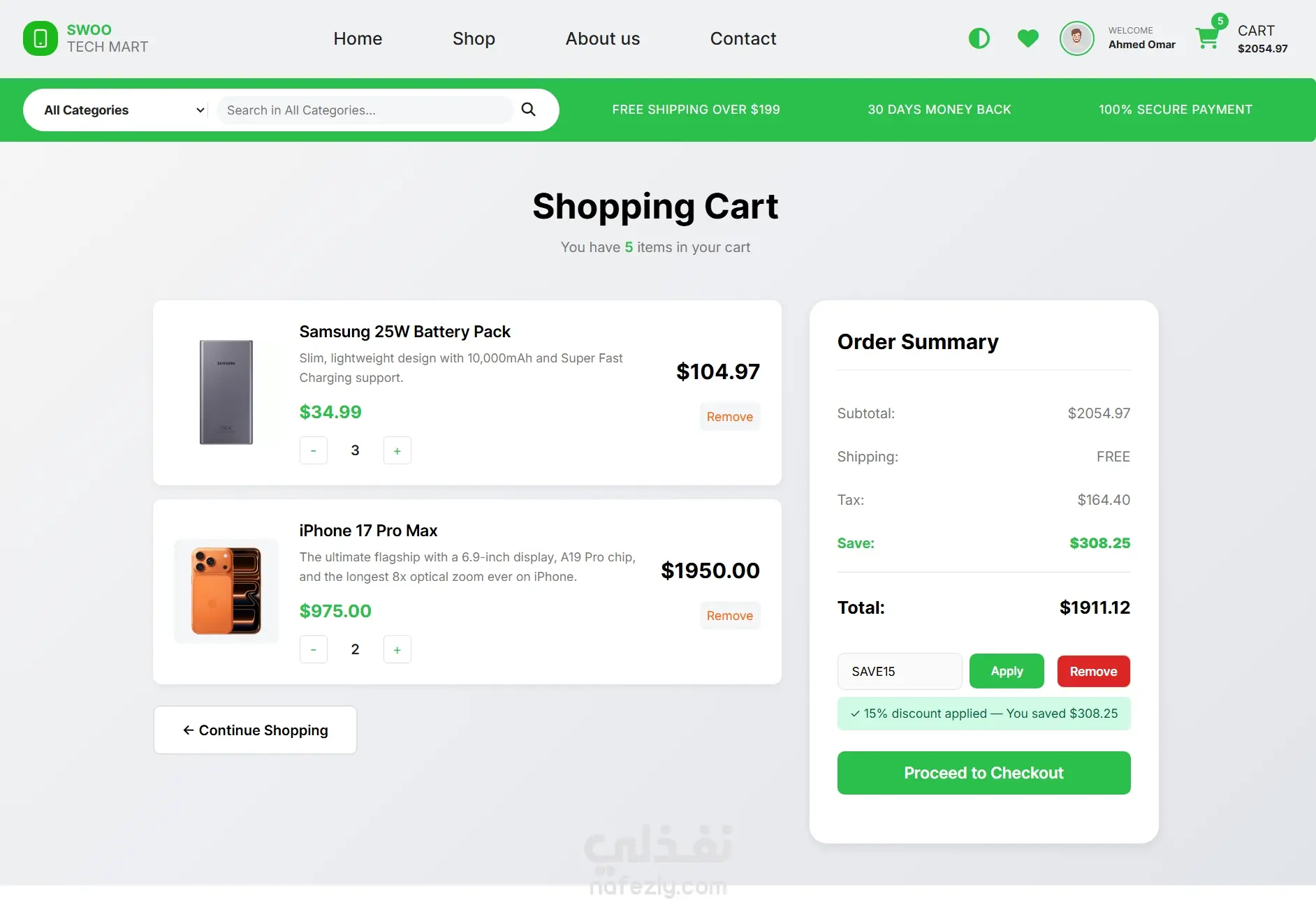 مشروع Tech Martهو تطبيق ويب تجارة إلكترونية عالي الأداء ومتجاوب، مصمم لتقديم تجربة تسوق مميزة. يركز المشروع على تنفيذ نظام تصميم SWOO لمتجر إلكتروني بأسلوب احترافي يجمع بين دقة واجهة المستخدم وتجربة الاستخدام العملية. الميزات الرئيسية: تنقل متقدم: قوائم ضخمة وأشرطة جانبية للفئات لتسهيل الوصول العميق اكتشاف المنتجات ديناميكي: تصفية، بحث، وترتيب المنتجات في الوقت الفعلي دفع محسن للتحويل: تجربة سلسة من العربة إلى الدفع واجهة متجاوبة: تنفيذ دقيق لتصميم Figma على الهواتف، التابلت، وسطح المكتب عناصر تفاعلية: عرض سريع للمنتجات، تكبير الصور، ومواصفات تبويبية
