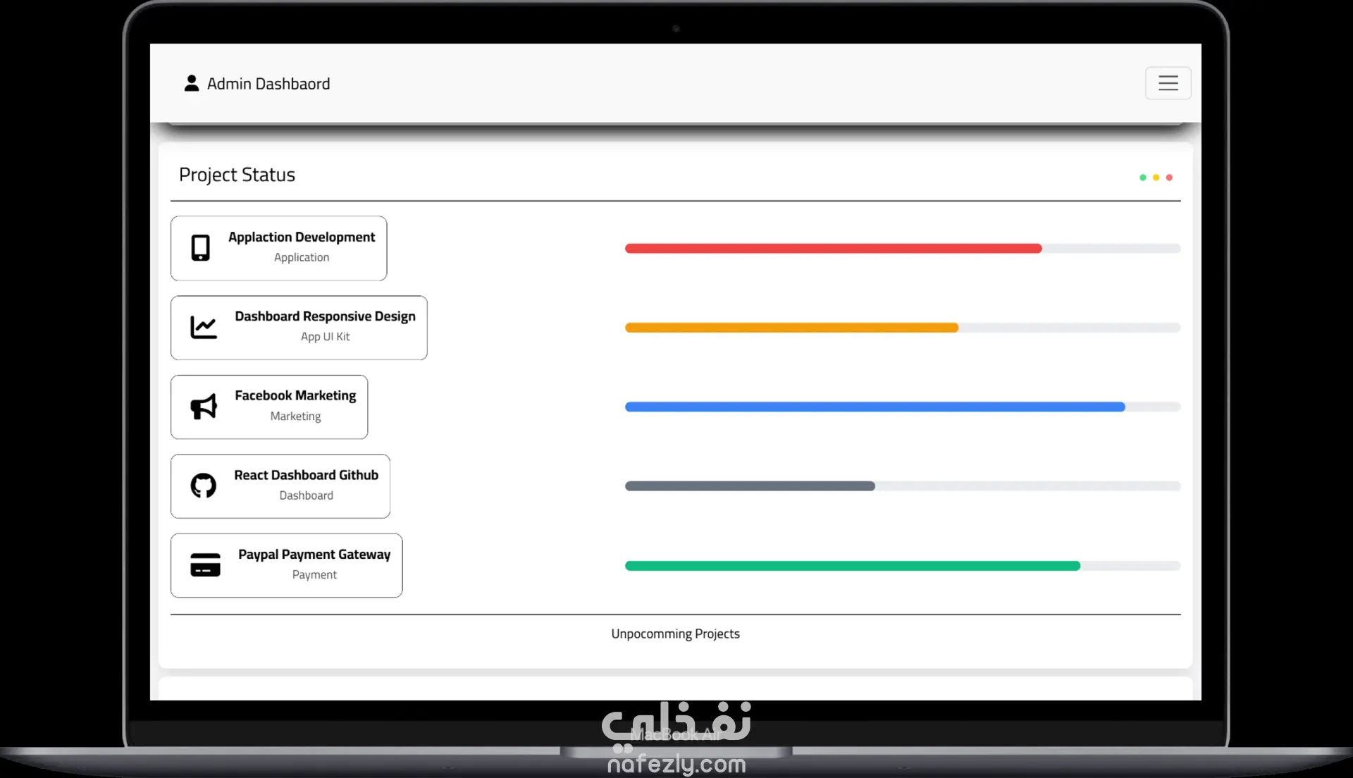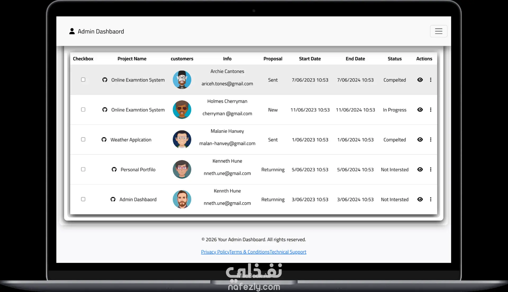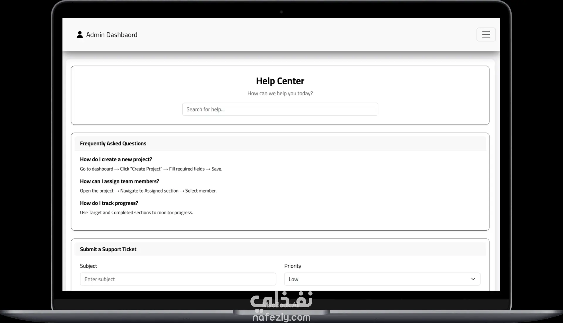 قمت بتطوير لوحة تحكم إدارية حديثة باستخدام HTML, CSS, JavaScript, Bootstrap, وReact مع التركيز على تصميم واجهة مستخدم جذابة وسهلة الاستخدام ومتجاوبة مع جميع الأجهزة. تحتوي لوحة التحكم على: نظام تسجيل دخول وتسجيل حساب: صفحات Login و Register آمنة. إدارة العملاء وCRM: إدارة بيانات العملاء والأعمال بشكل فعال. التحليلات والرسوم البيانية: عرض البيانات بشكل تفاعلي باستخدام Chart.js. الوضع الليلي (Dark Mode): إمكانية التبديل بين الوضعين الفاتح والداكن. أيقونات Font Awesome: استخدام أيقونات احترافية لتحسين تجربة المستخدم. إدارة المحتوى والصفحات: تنظيم الصفحات والأقسام لتسهيل التصفح والإدارة. قاعدة المعرفة (Knowledge Base): منطقة مركزية للتوثيق ومراجعة البيانات. أبرز مميزات المشروع: كود React نظيف ومنظم وسهل الصيانة. لوحة تحكم متجاوبة بالكامل على الكمبيوتر، التابلت، والموبايل. مشروع عملي يوضح مهارات تطوير الواجهات الأمامية، تصميم واجهة المستخدم، وعرض البيانات التفاعلي.