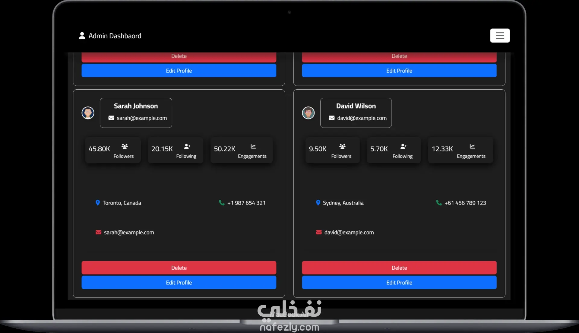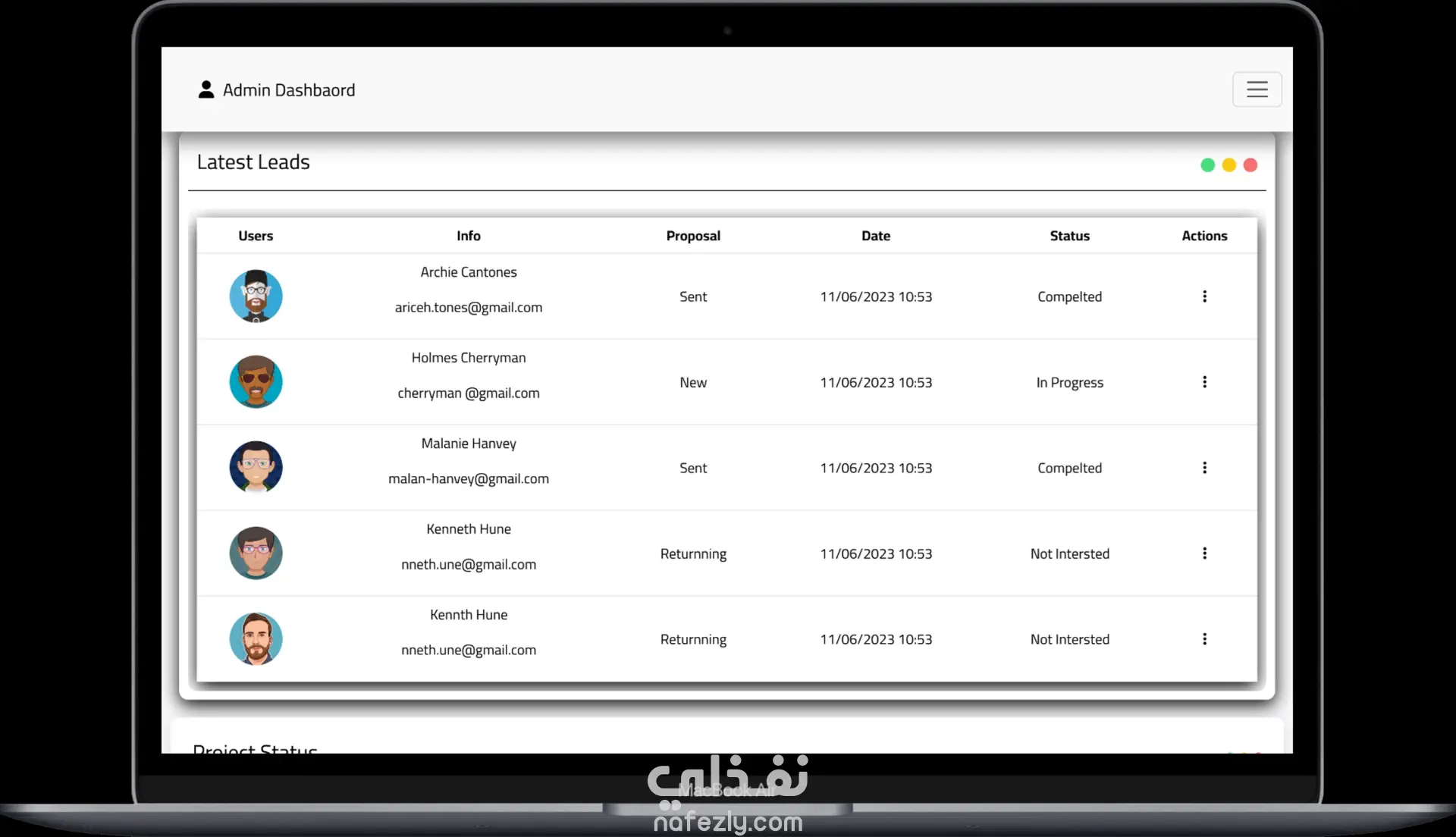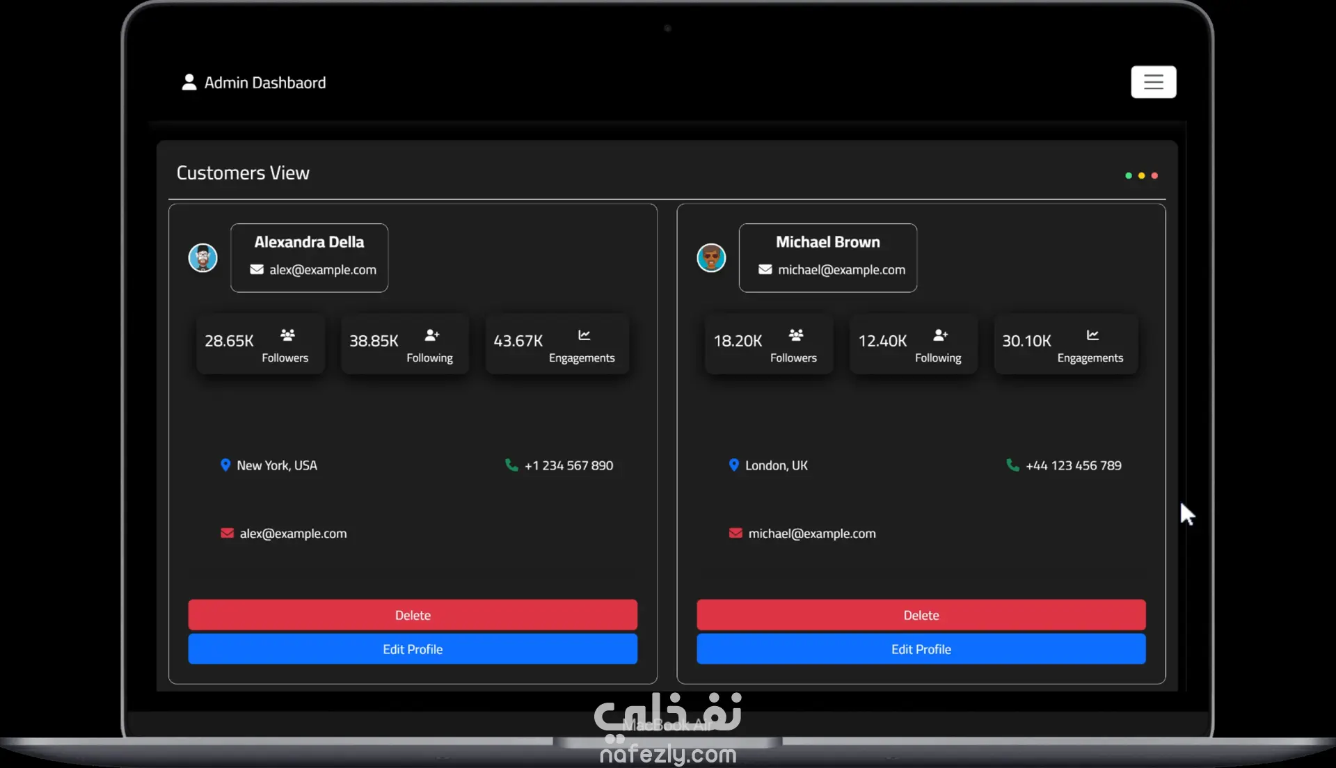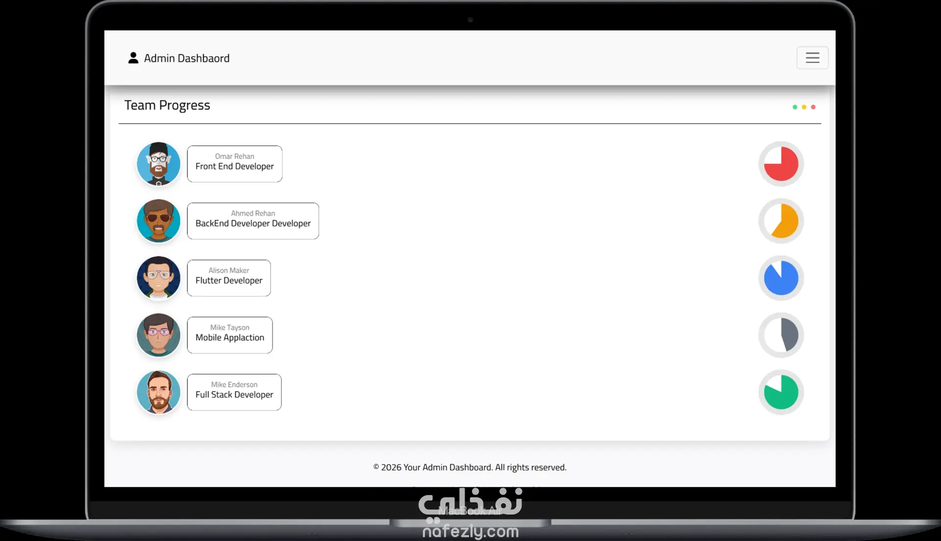 قمت بتطوير لوحة تحكم إدارية حديثة باستخدام HTML, CSS, JavaScript, Bootstrap, وReact مع التركيز على تصميم واجهة مستخدم جذابة وسهلة الاستخدام ومتجاوبة مع جميع الأجهزة. تحتوي لوحة التحكم على: نظام تسجيل دخول وتسجيل حساب: صفحات Login و Register آمنة. إدارة العملاء وCRM: إدارة بيانات العملاء والأعمال بشكل فعال. التحليلات والرسوم البيانية: عرض البيانات بشكل تفاعلي باستخدام Chart.js. الوضع الليلي (Dark Mode): إمكانية التبديل بين الوضعين الفاتح والداكن. أيقونات Font Awesome: استخدام أيقونات احترافية لتحسين تجربة المستخدم. إدارة المحتوى والصفحات: تنظيم الصفحات والأقسام لتسهيل التصفح والإدارة. قاعدة المعرفة (Knowledge Base): منطقة مركزية للتوثيق ومراجعة البيانات. أبرز مميزات المشروع: كود React نظيف ومنظم وسهل الصيانة. لوحة تحكم متجاوبة بالكامل على الكمبيوتر، التابلت، والموبايل. مشروع عملي يوضح مهارات تطوير الواجهات الأمامية، تصميم واجهة المستخدم، وعرض البيانات التفاعلي.