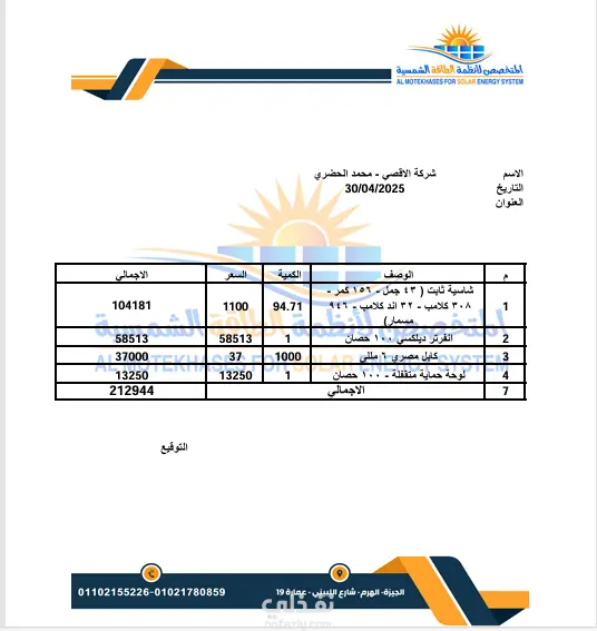 🔹 تصميم عرض سعر احترافي جاهز للطباعة والإرسال للعميل