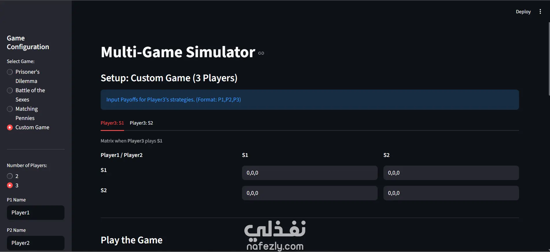 تطوير تطبيق تفاعلي لمحاكاة ألعاب نظرية الألعاب باستخدام Python وStreamlit