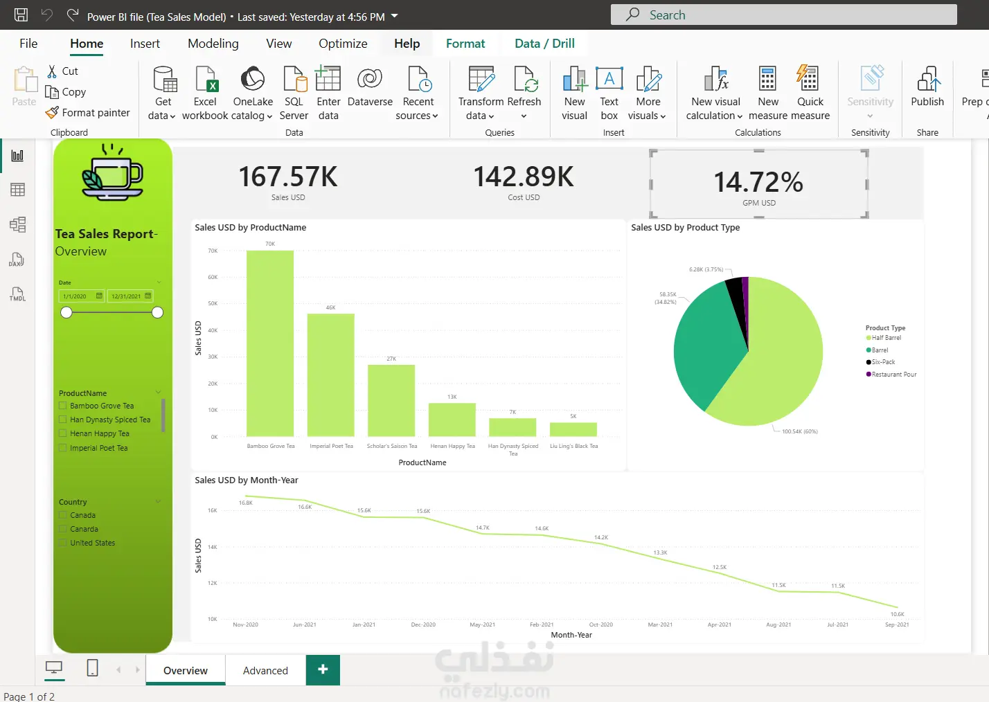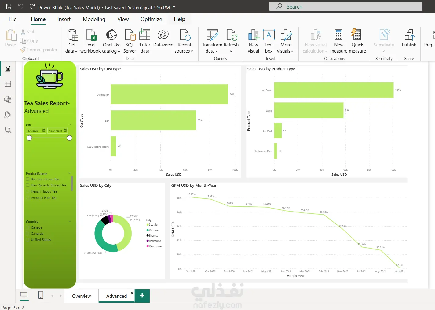 عمل تقرير مفصل لتحليل مبيعات سلسلة محلات لبيع الشاى فى كندا والولايات المتحدة الأمريكية