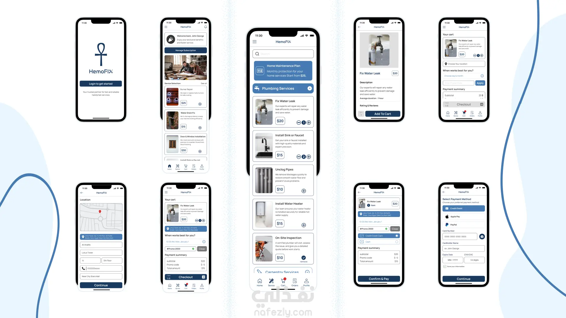 تصميم تطبيق HemoFIX لخدمات الصيانة المنـزلية والفنيين – تجربة مستخدم UI/UX متكاملة