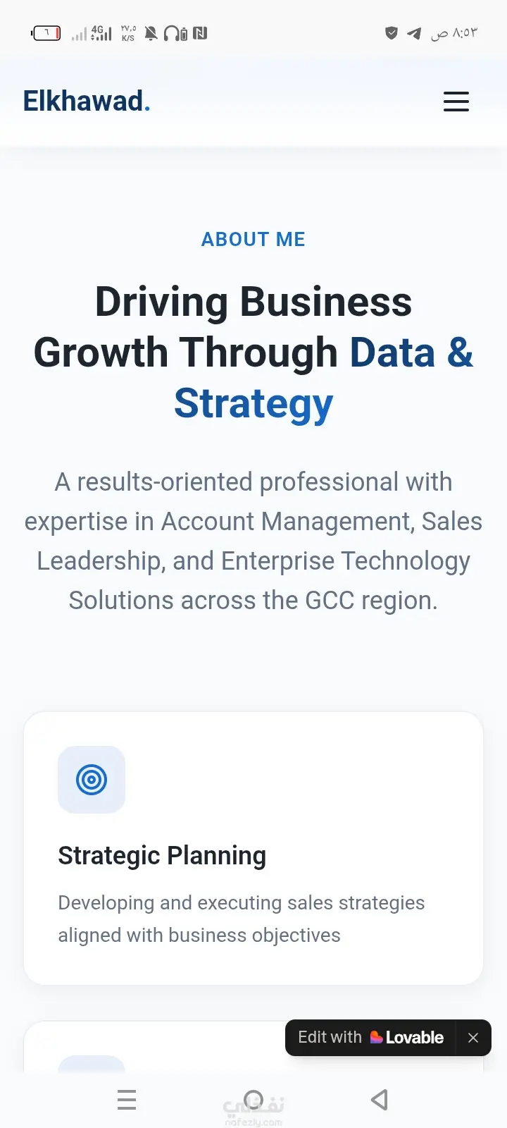 أقدّم خدمة تصميم وبرمجة موقع إلكتروني شخصي يعكس هويتك المهنية ويعرض خبراتك ومهاراتك بطريقة جذابة واحترافية. يشمل الموقع صفحة تعريفية، معرض أعمال (Portfolio)، عرض الخدمات، ونموذج تواصل مباشر. تصميم عصري متجاوب مع جميع الأجهزة مع تحسين السرعة وتجربة المستخدم. تهيئة الموقع لمحركات البحث (SEO) لزيادة ظهورك وبناء حضور رقمي قوي. 🎁 إمكانية إطلاق موقعك بدون شراء دومين في البداية لتبدأ عرض أعمالك فورًا بأقل تكلفة.