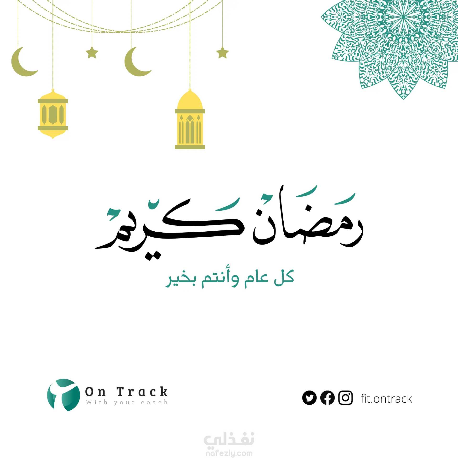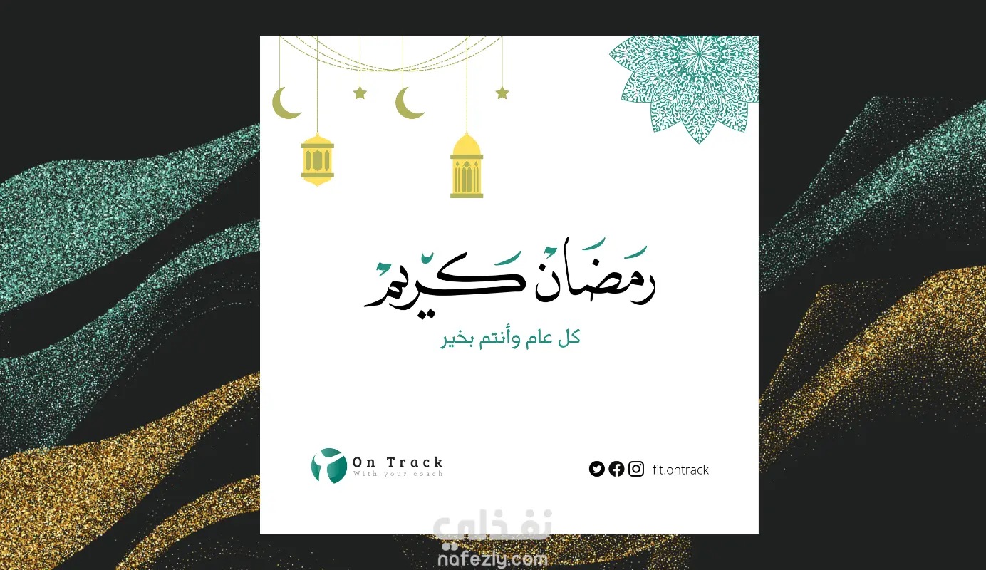 تصميم تهنئة رمضان أنيقة ومتسقة مع هوية أون تراك