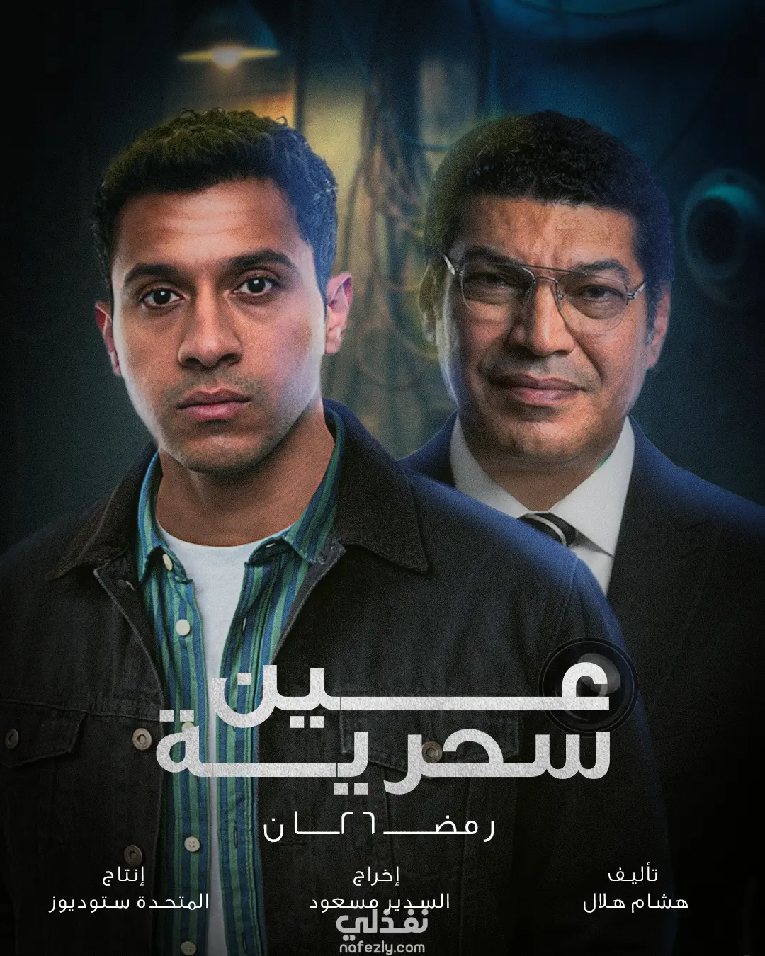 مسلسل عين سحرية - تصميم غير رسمي | Magic Eye Series - Unofficial Concept Art تصميم بسيط مستوحى من اسم مسلسل "عين سحرية". حاولت محاكاة تجربة النظر من العين السحرية عبر إضافة إطار دائري حول الشخصيات، مع لمسة انحناء بزاوية 360∘ لتعزيز الواقعية دون المساس بملامح الوجوه. التصميم يدمج أيضاً عناصر الكاميرات ليعكس جوهر القصة القائم على المراقبة. A simple creative concept for the series "Magic Eye". The design simulates the visual perspective of a Magic Eye (peephole) by framing the characters in a circular vignette and applying a subtle 360∘ field-of-view effect. This approach, combined with surveillance camera elements, captures the show’s atmosphere of suspense and mystery. Image may contain: man, person and human face