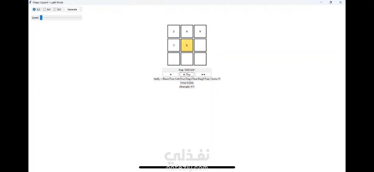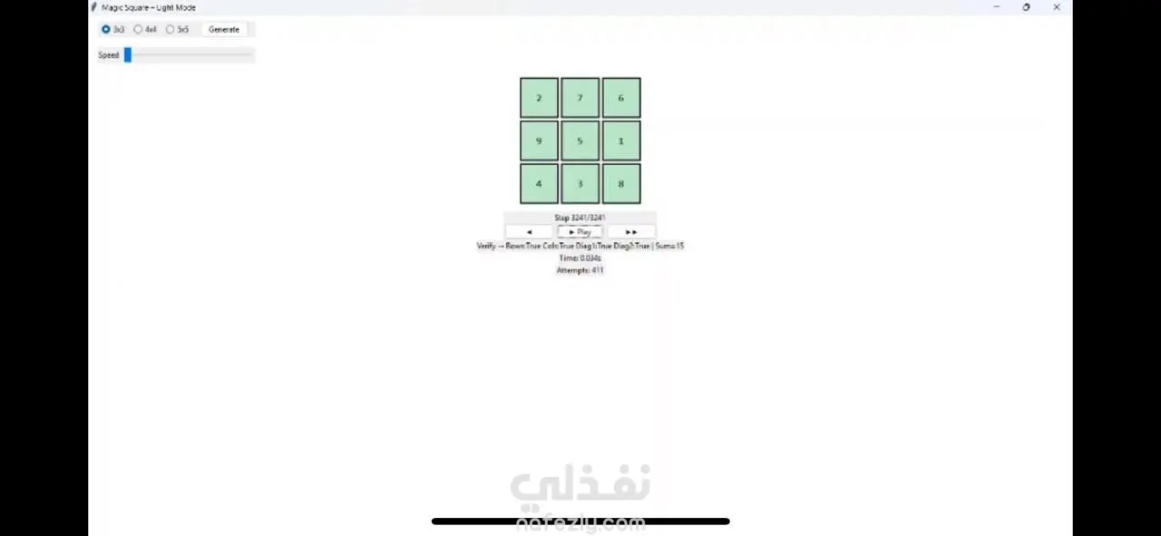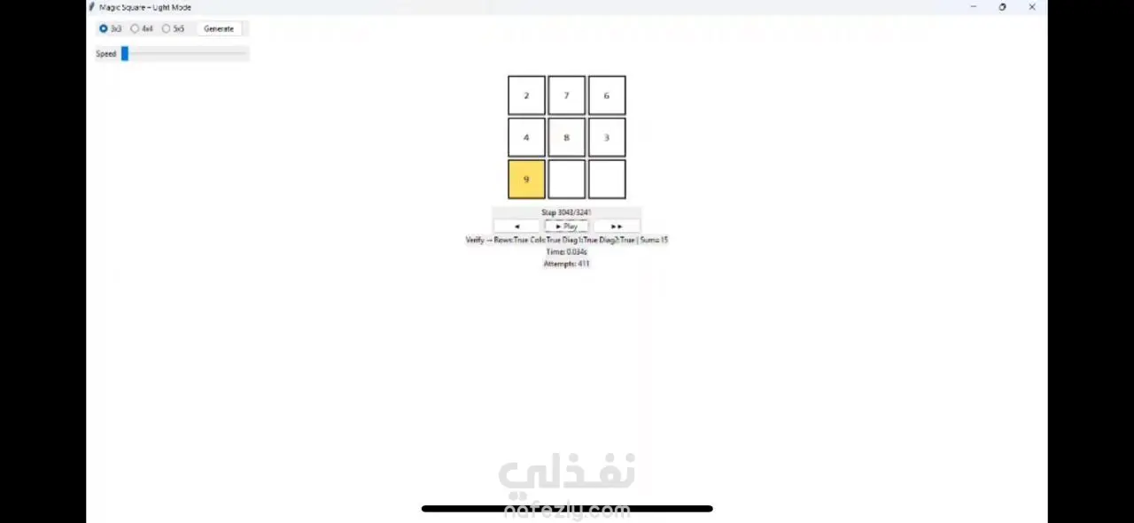 بناء خوارزمية قادرة على التحقق من صحة المربع السحري أو إيجاد الحل بطريقة منظمة تعتمد على المنطق الرياضي.