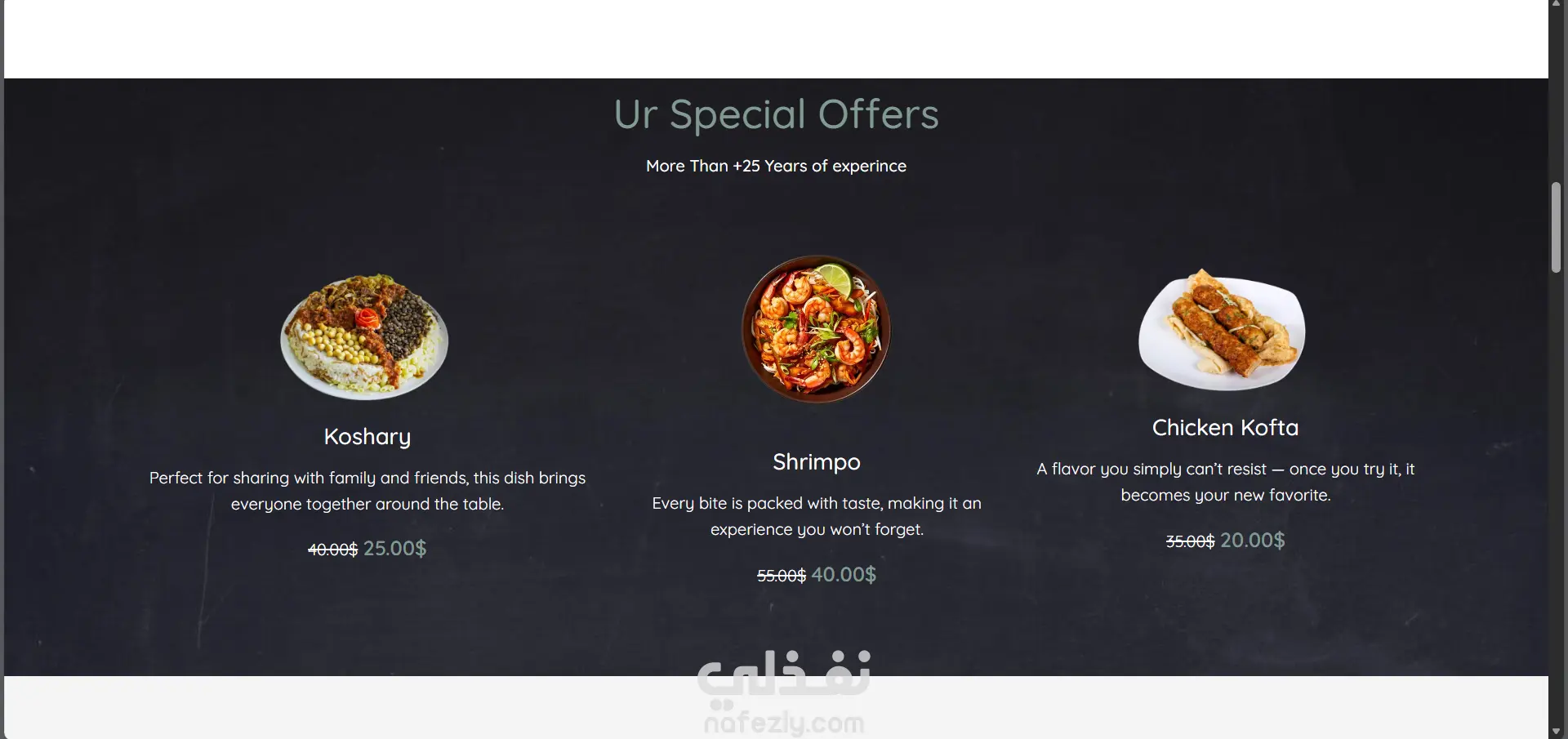 أنا محمود مصطفى، صممت هذا الموقع خصيصًا لمطعم الكابتن لتسهيل حجز الطاولات أونلاين بطريقة سهلة وسريعة. الموقع يتميز بـ: Responsive Design: باستخدام Media Queries ليكون متوافق مع جميع الشاشات (كمبيوتر، لاب توب، تابلت، موبايل). أداء عالي (High Performance): الموقع مصمم ليكون سريع التحميل وسلس في الاستخدام. واجهة مستخدم بسيطة وواضحة لتسهيل عملية الحجز على الزوار. تصميم جذاب بالألوان أصفر على أزرق ساسي يعكس هوية المطعم ويشجع الزوار على التفاعل. خمس صفحات رئيسية: Home, About, Menu, Gallery, Contact Us. هذه الخدمة مناسبة لأي مطعم يريد أن يقدم خدمة حجز طاولات أونلاين بشكل احترافي مع تجربة مستخدم ممتازة على جميع الأجهزة.