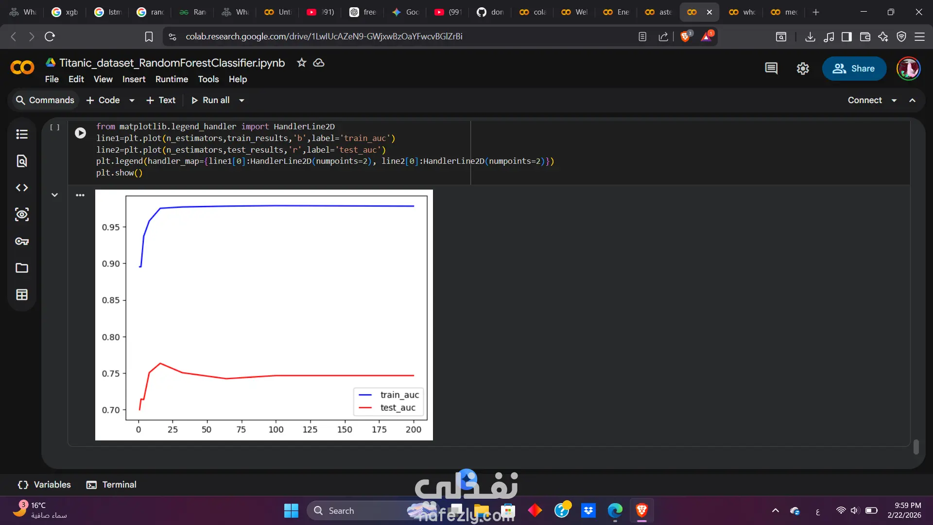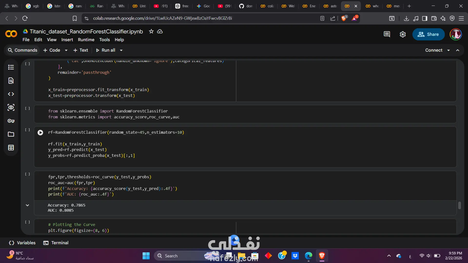 وصف المشروع: بناء نموذج تعلم آلة للتنبؤ باحتمالية نجاة الركاب بناءً على متغيرات متعددة مثل النوع، العمر، الدرجة الاجتماعية، ومكان الصعود. تضمن العمل معالجة مكثفة للبيانات المفقودة وتحويل البيانات النصية إلى قيم رقمية قابلة للمعالجة. التفاصيل التقنية: النموذج: استخدام خوارزمية Random Forest Classifier لقدرتها العالية على التعامل مع البيانات غير الخطية ومنع الإفراط في التناسب (Overfitting). المعالجة: تضمن المشروع تنظيف البيانات (Data Cleaning) واستخدام مكتبة Seaborn لعمل تحليل استكشافي (EDA) يوضح العلاقة بين جنس الراكب وفرص نجاته.