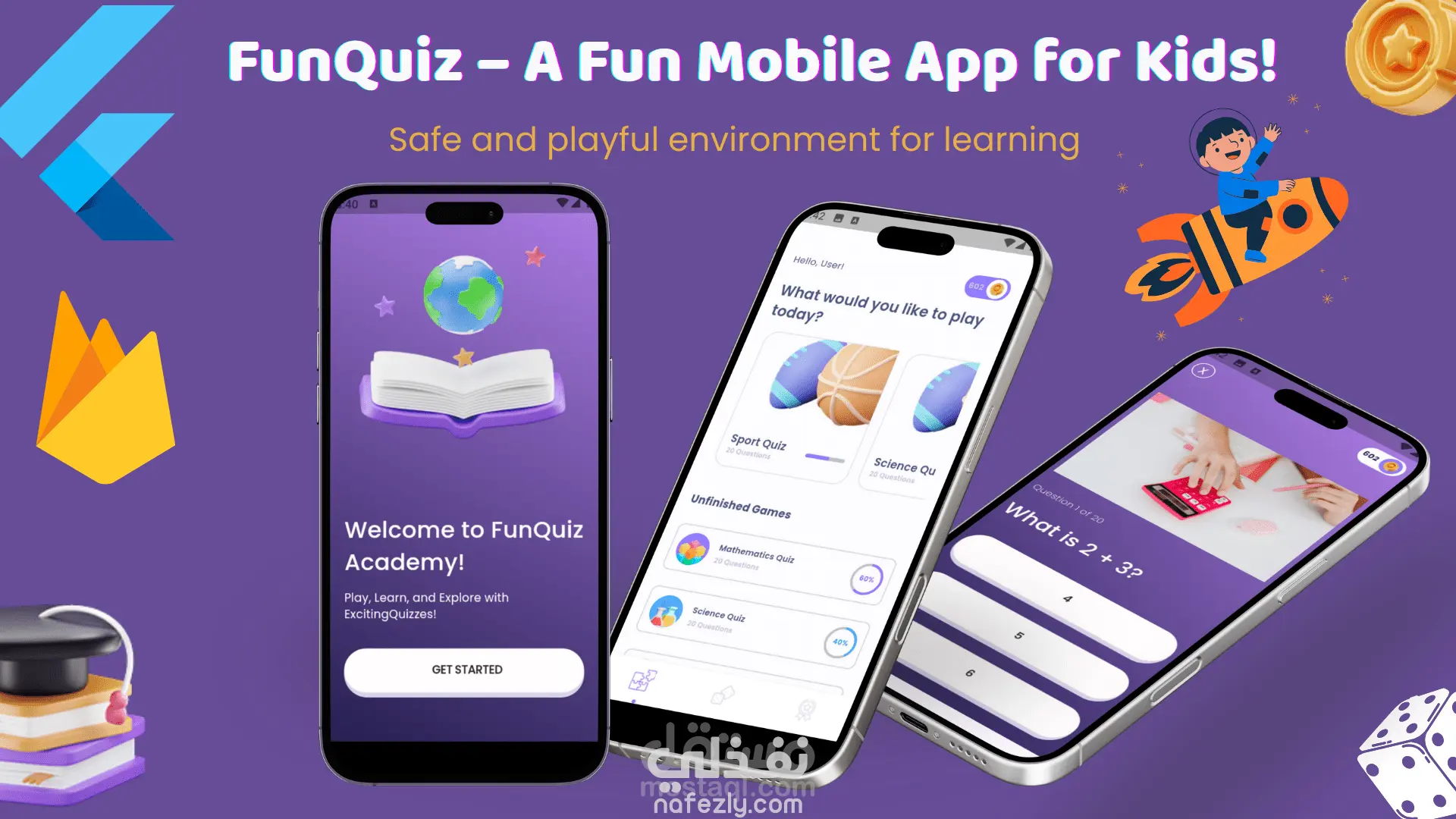 تطبيق تعليمي بسيط وسهل الاستخدام موجّه للأطفال، ويجمع بين المتعة والتعليم، حيث يحتوي على صور وأيقونات وعناصر كرتونية وأشياء محببة للأطفال، بالإضافة إلى تنوّع الأسئلة في جميع المجالات مثل العلوم. كل ذلك مع نظام تجميع النقاط ولوحة متصدرين (Leaderboard) لجعل التجربة تنافسية وممتعة للأطفال.