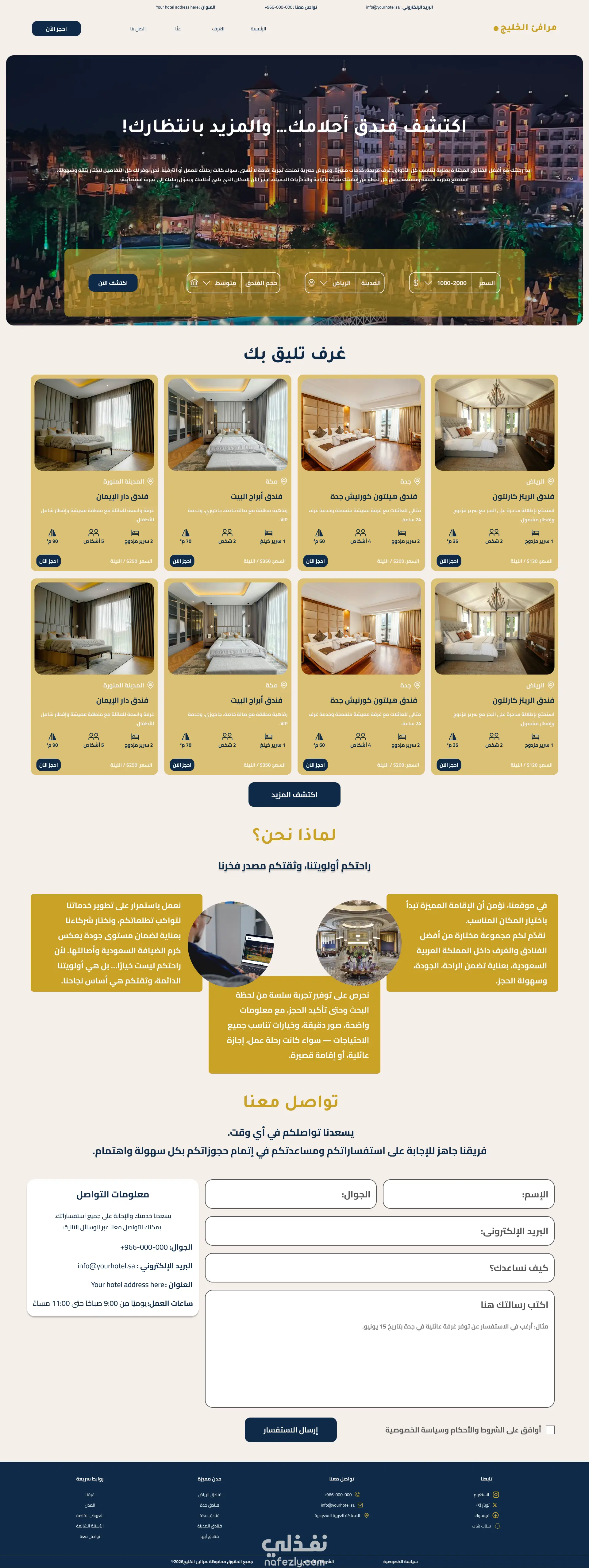 تصميم واجهة مستخدم (UI/UX) لمنصة حجز فنادق فاخرة - فندقي (نظام تفاعلي كامل)