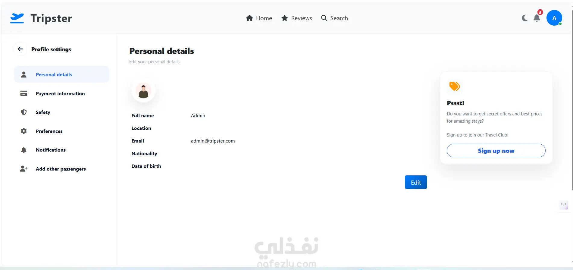 برمجة وتخصيص موقع حجز فنادق وسياحة متكامل (نموذج Tripster)