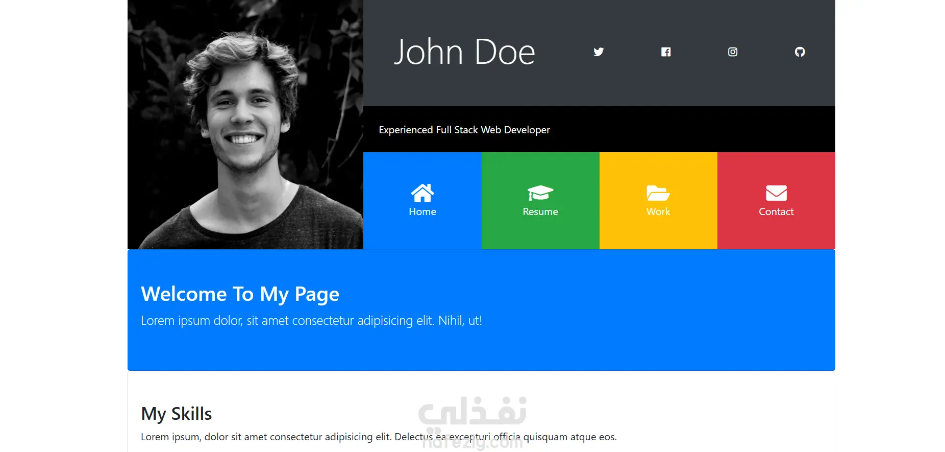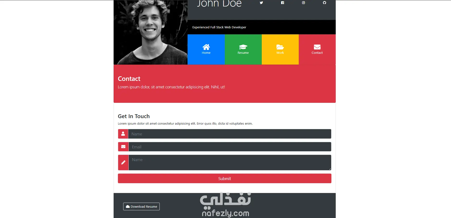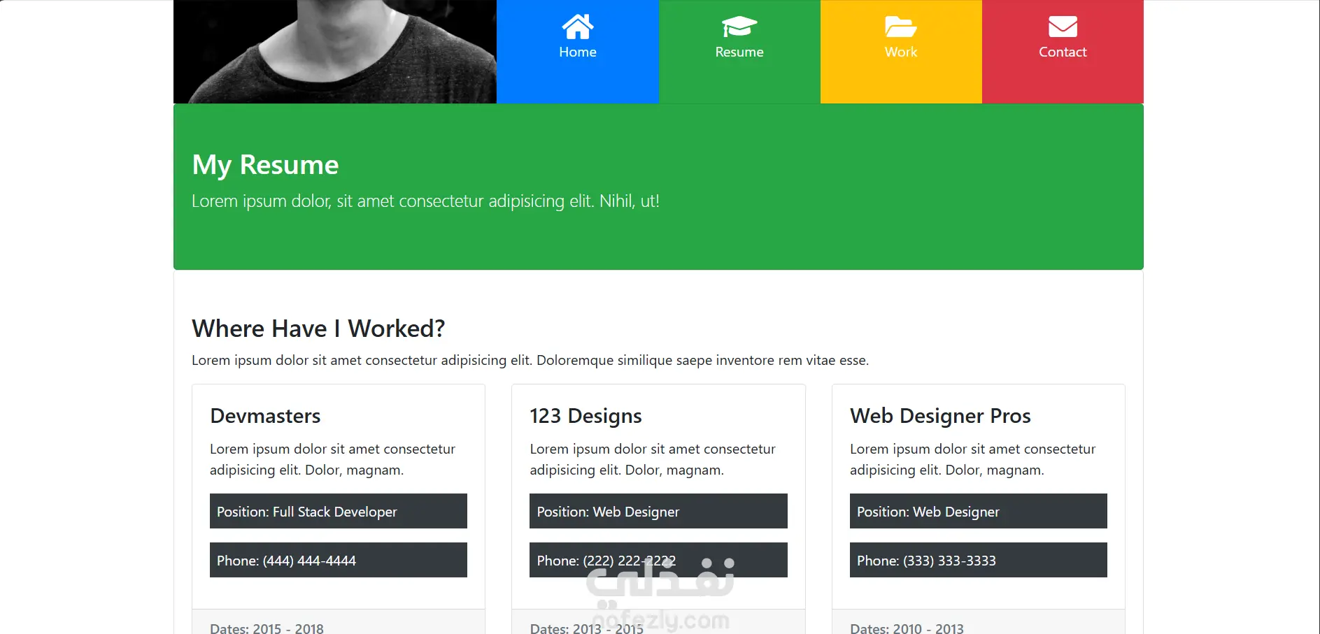 - قسم للسيرة الذاتية يقدم ملخصًا عن الخلفية التعليمية والعملية.