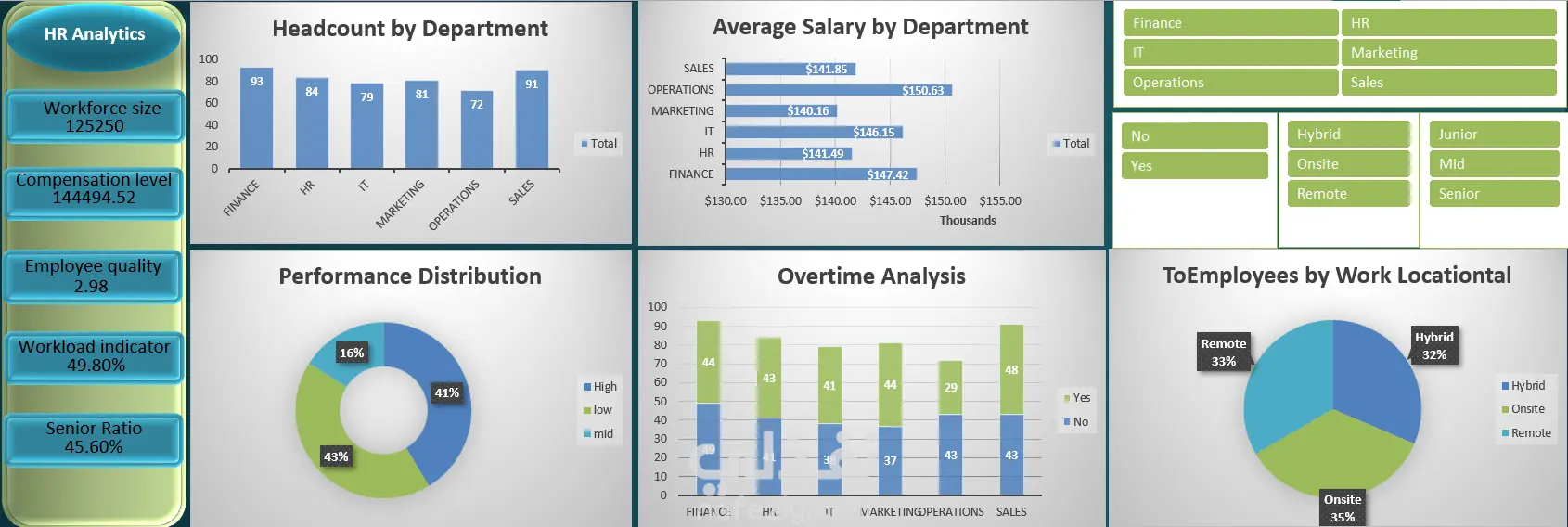 تحليل بيانات الموارد البشرية (HR Analytics) لـ 500 موظف وبناء لوحة تحكم تفاعلية