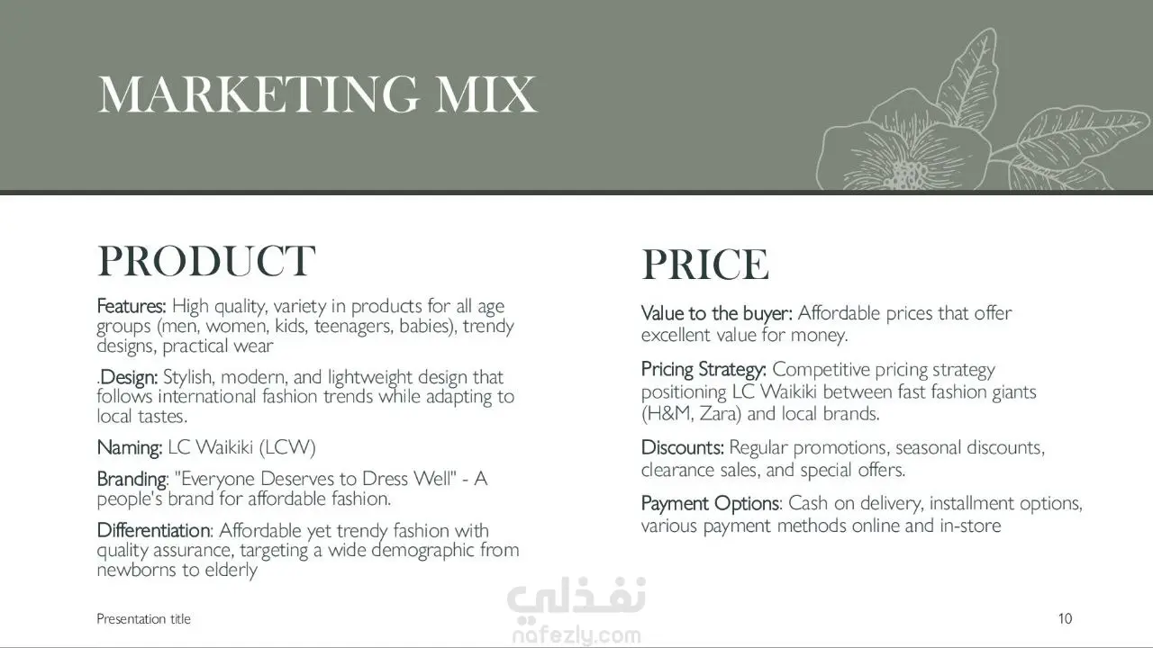 هذا المشروع عبارة عن خطة تسويقية متكاملة لعلامة "LC Waikiki"، وهي علامة تجارية تركية رائدة في مجال الأزياء، تهدف إلى توفير ملابس عصرية وبأسعار معقولة لجميع أفراد الأسرة. يركز المشروع على تعزيز الحصة السوقية للشركة وتوسيع نطاق وصولها العالمي من خلال استراتيجيات تسويقية حديثة.