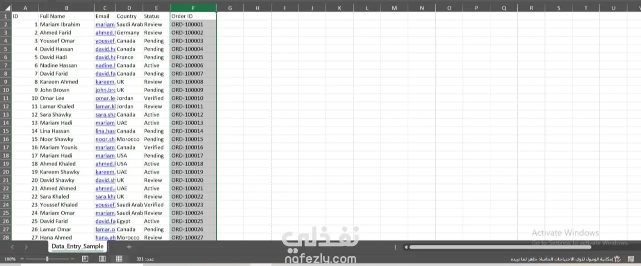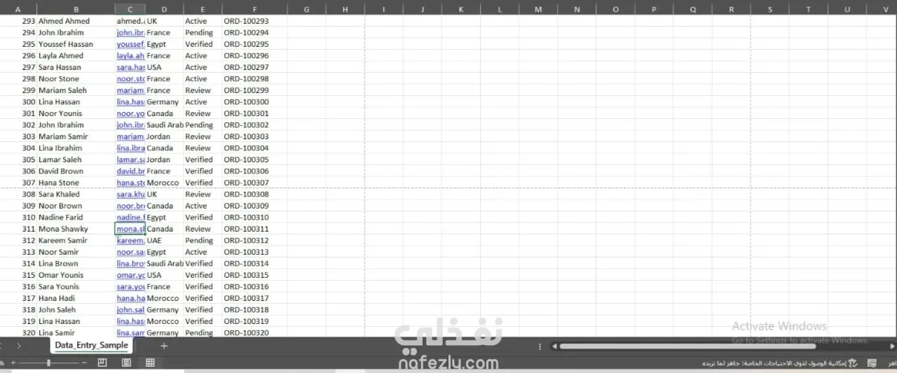 مشروع إدخال البيانات (الـ 300 بيان في إكسيل)