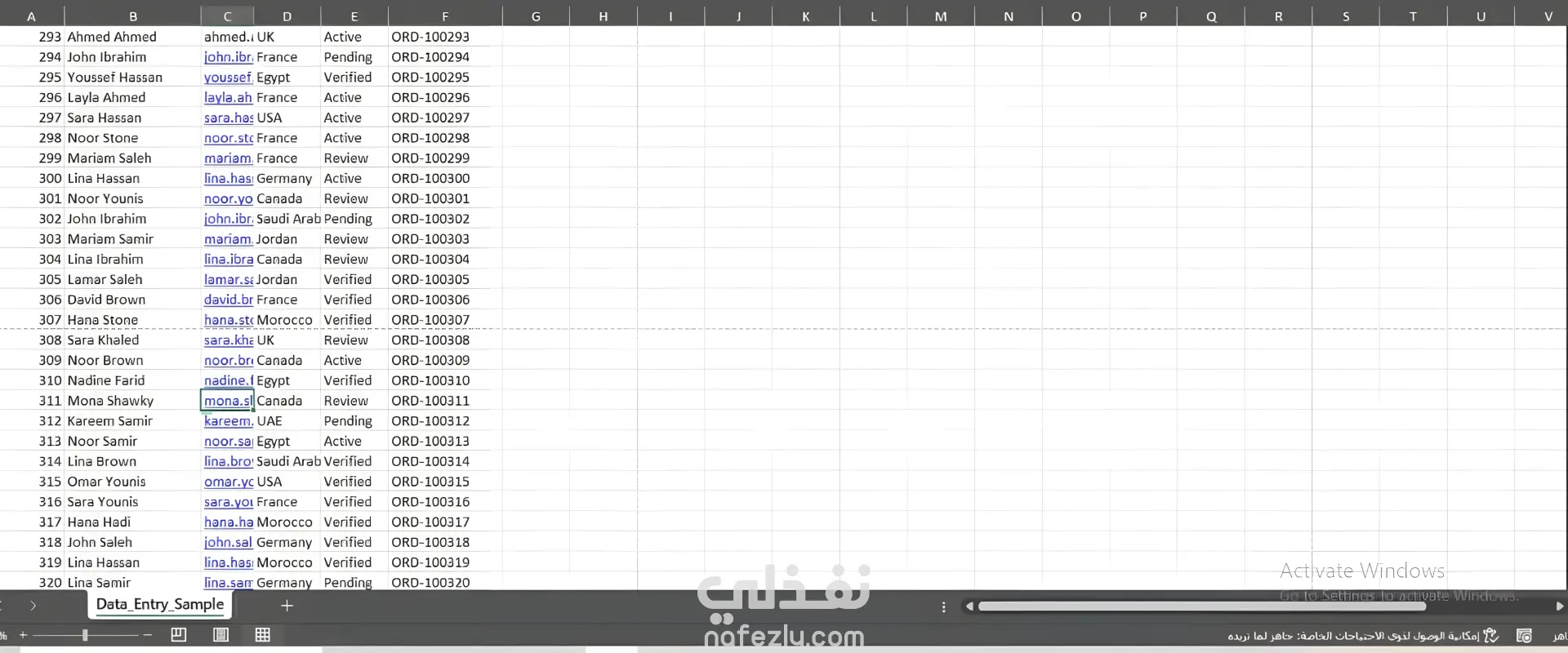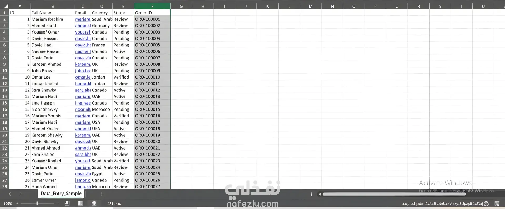 إدخال وتنظيم بيانات ضخمة (300+ سجل) على Excel بدقة احترافية.