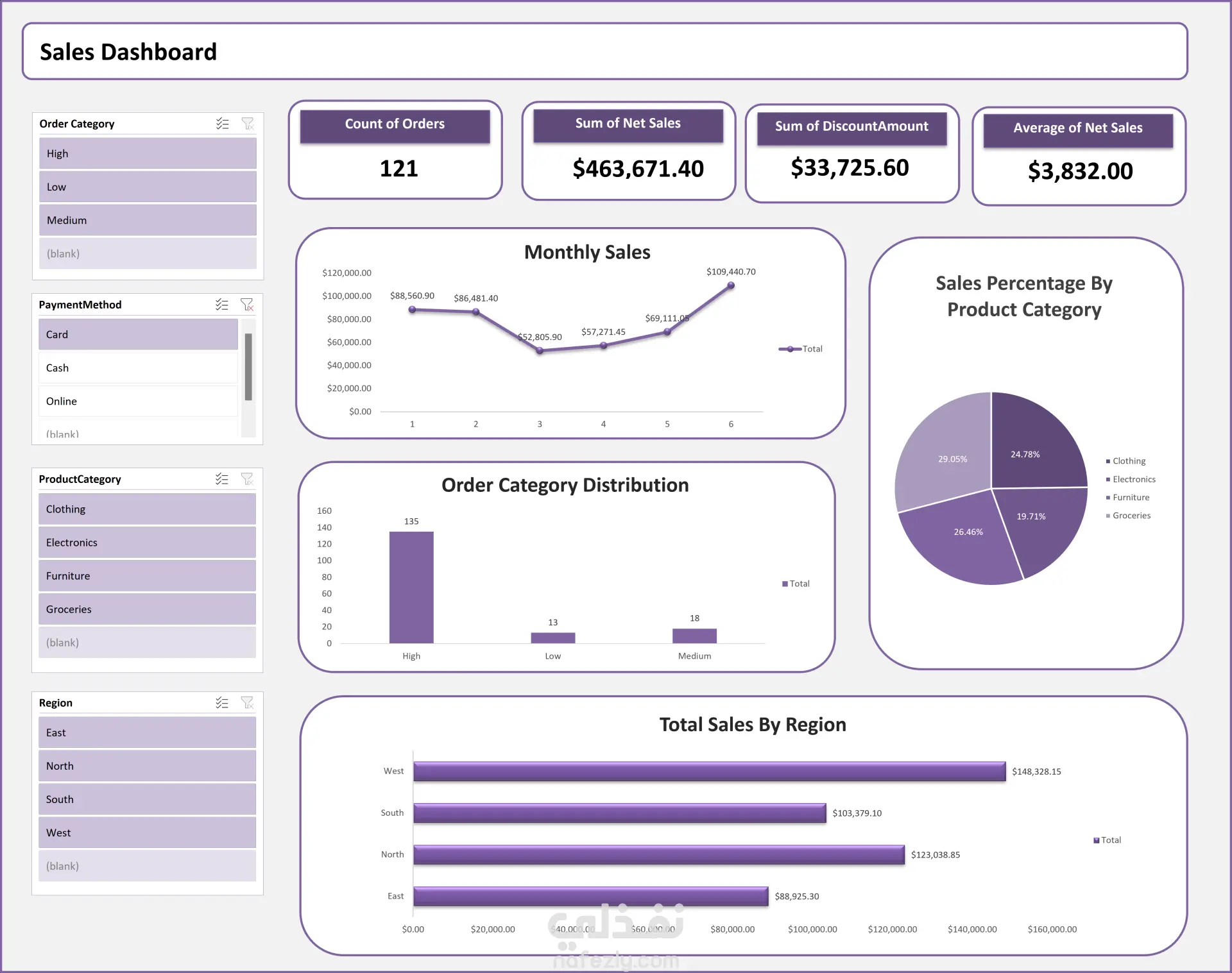 Dashboard احترافي على Excel مع تحليل بيانات وKPIs