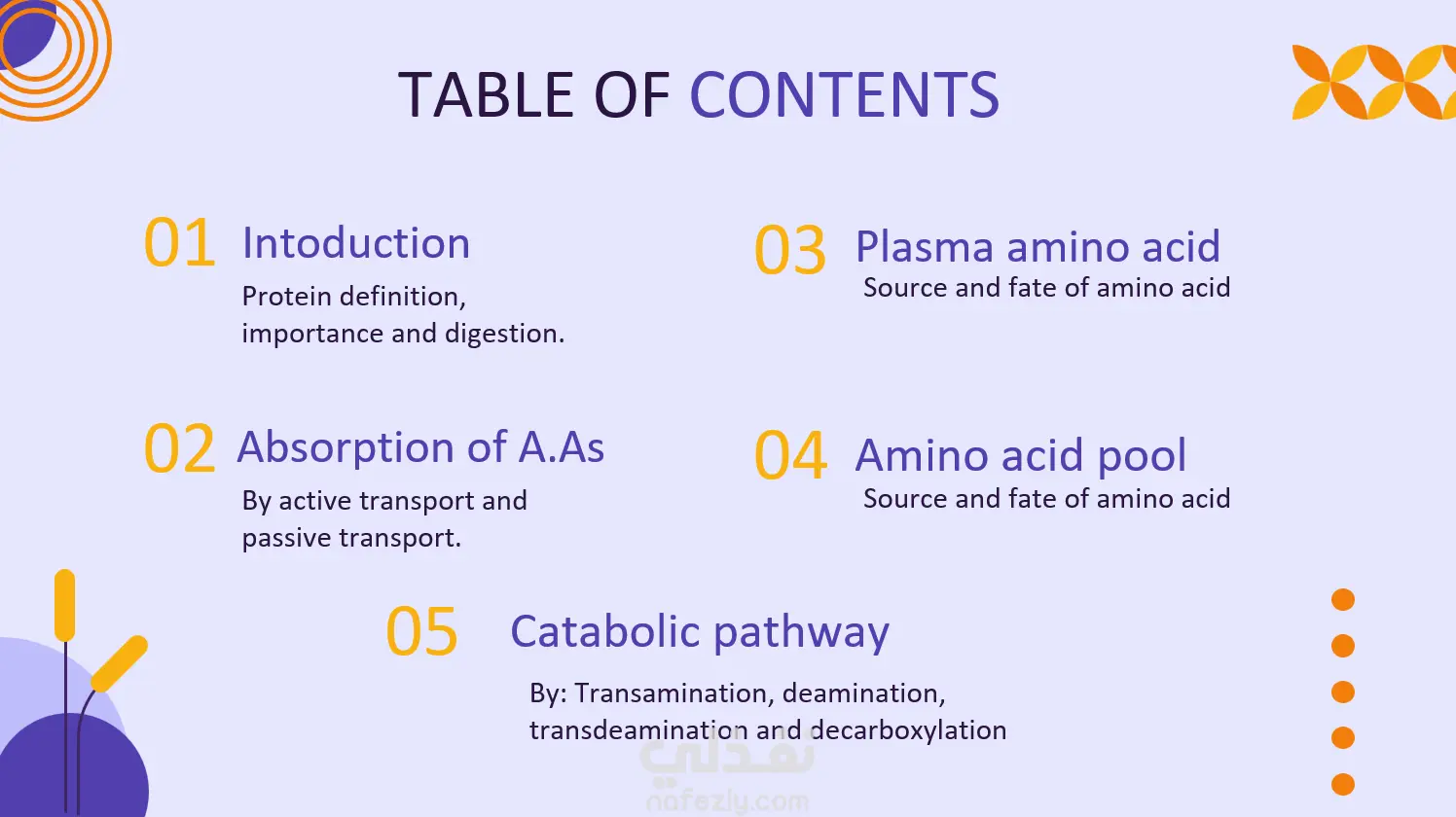 Academic PowerPoint presentation explaining protein metabolism pathways with clear content and simple visual layout.