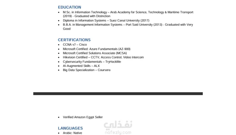 تم تسليم السيرة بصيغتي Word و PDF وجاهزة للتقديم مباشرة على الوظائف المحلية والدولية.