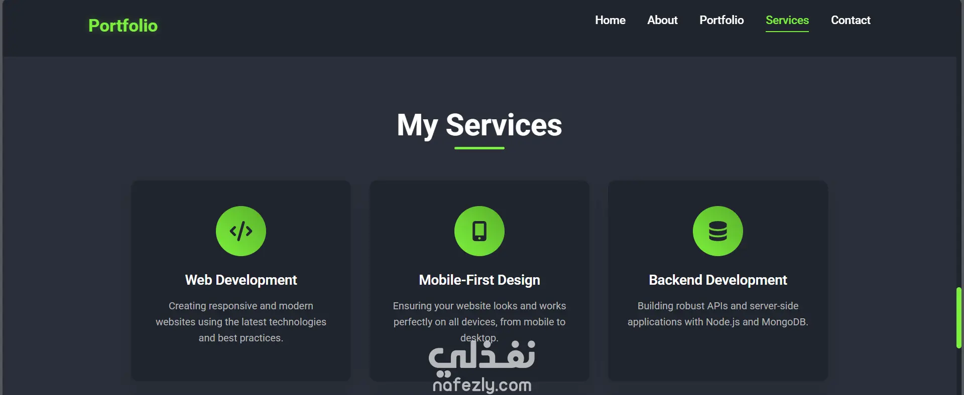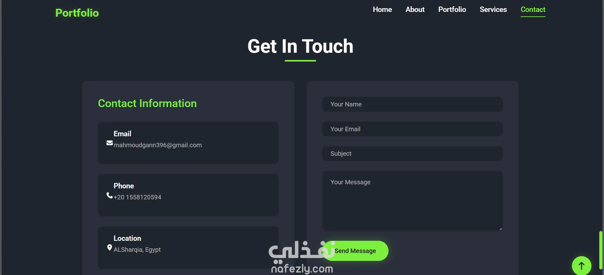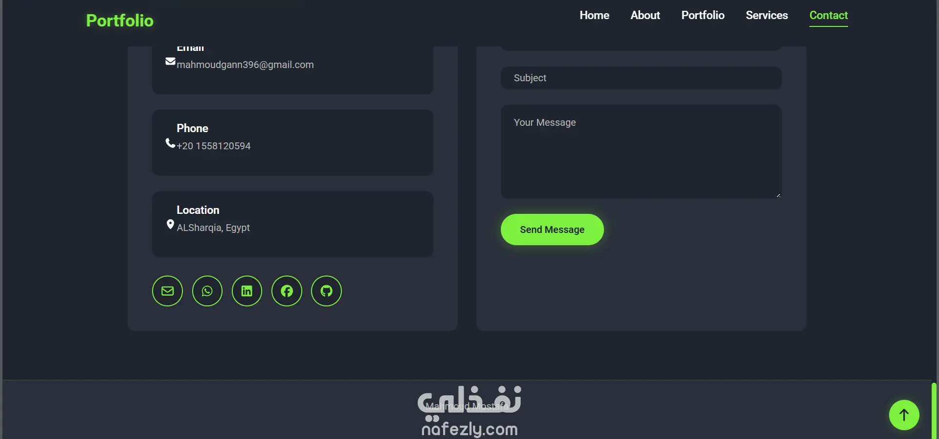 هذا المشروع عبارة عن موقع ويب عصري ومتجاوب بالكامل، مصمم لعرض مهاراتي وخبراتي كمطور تطبيقات متكاملة متخصص في تقنيات .NET. يتميز الموقع بواجهة أنيقة ذات طابع داكن مع لمسات خضراء، ورسوم متحركة سلسة، وتجربة مستخدم سهلة وبديهية.