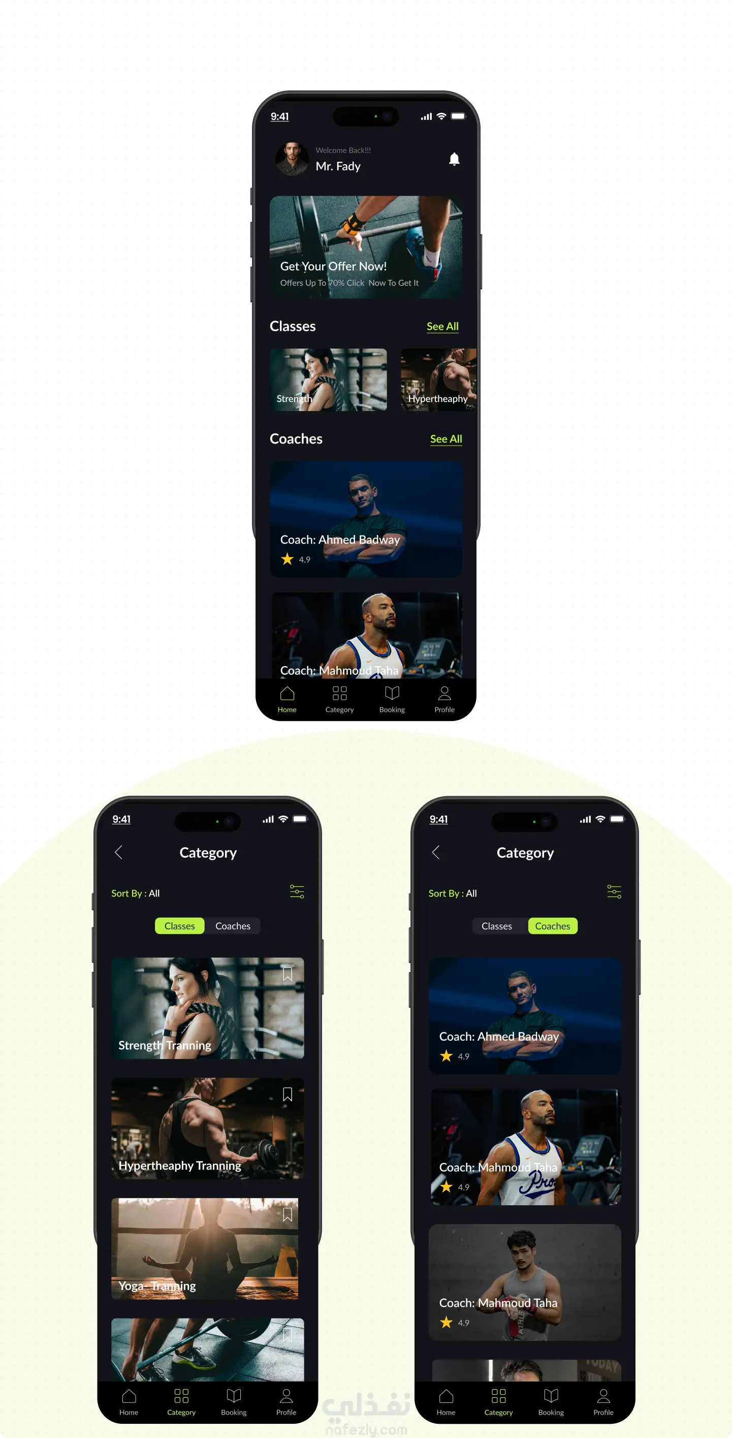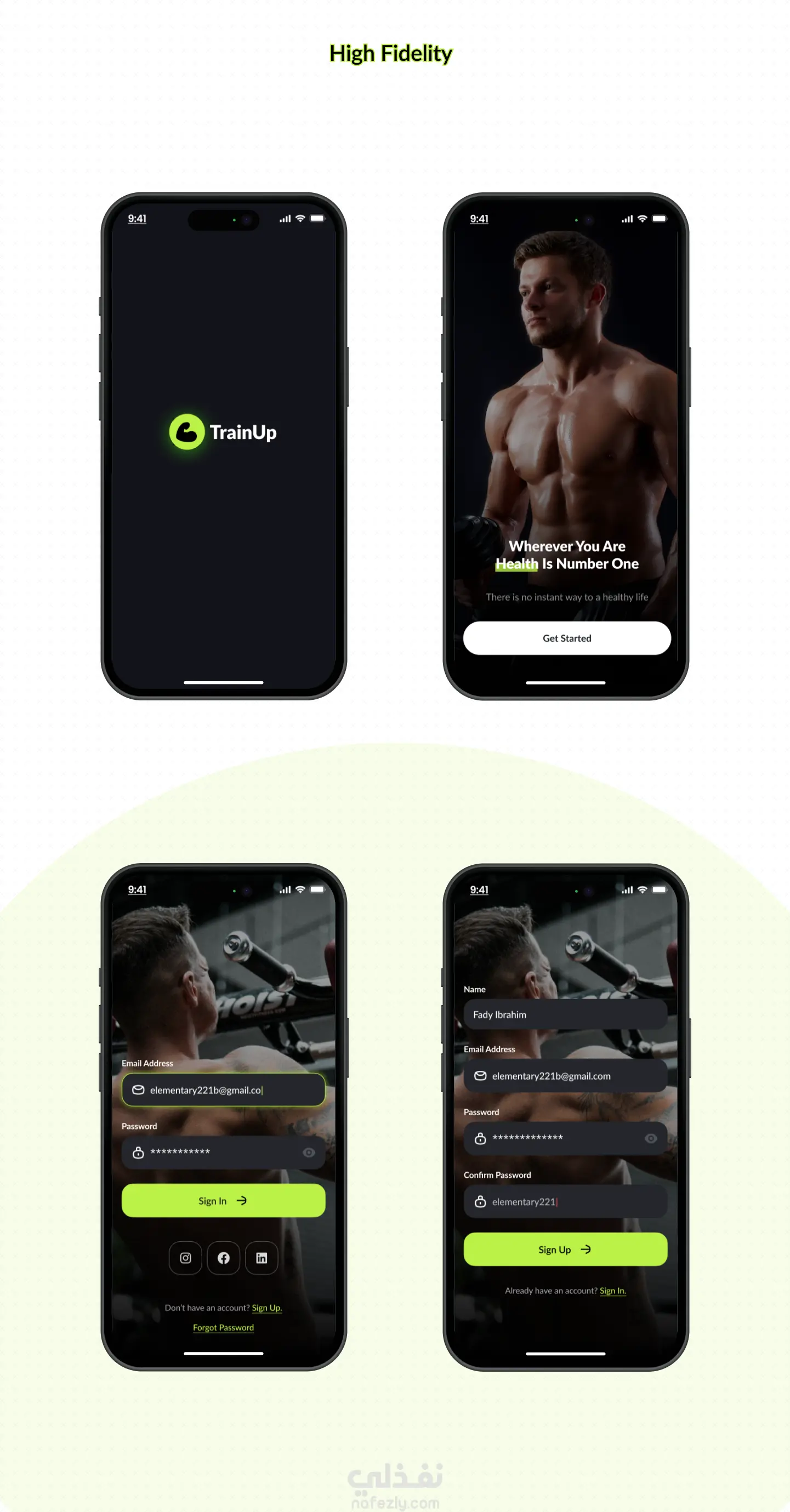 تصميم تطبيق رياضي لحجز المدربين – Train Up (UI/UX Design)
