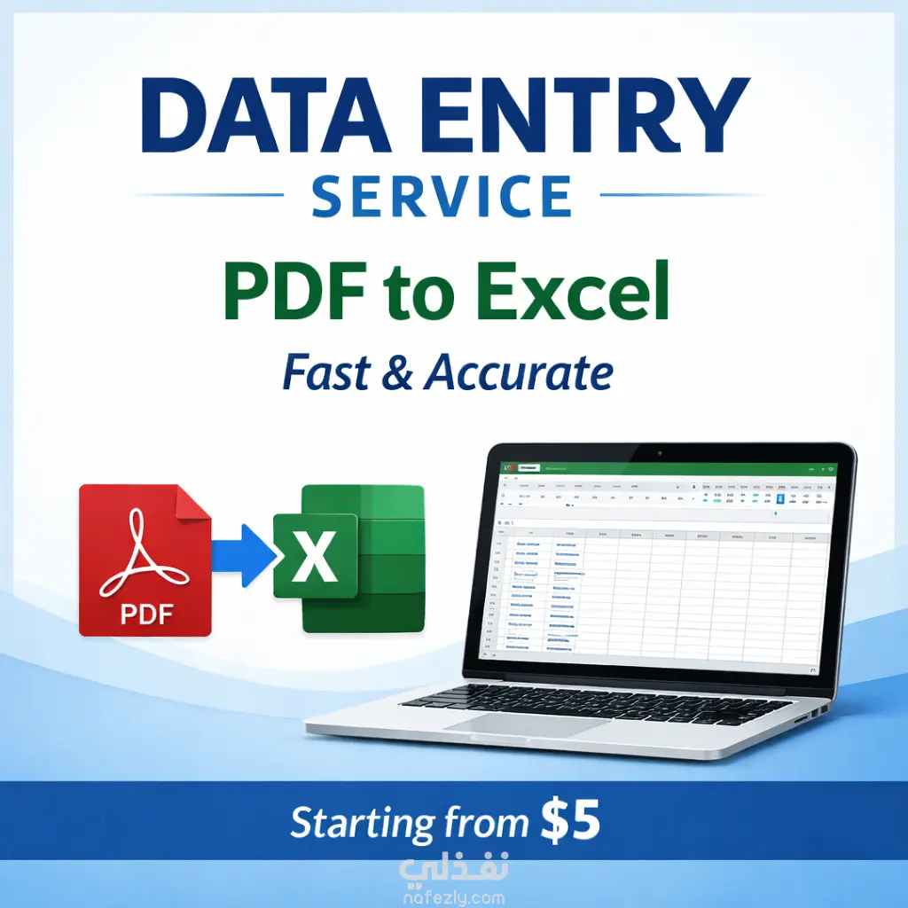 أقدم خدمة إدخال البيانات من ملفات PDF أو الصور إلى ملف Excel منظم ومرتب باحترافية عالية.
