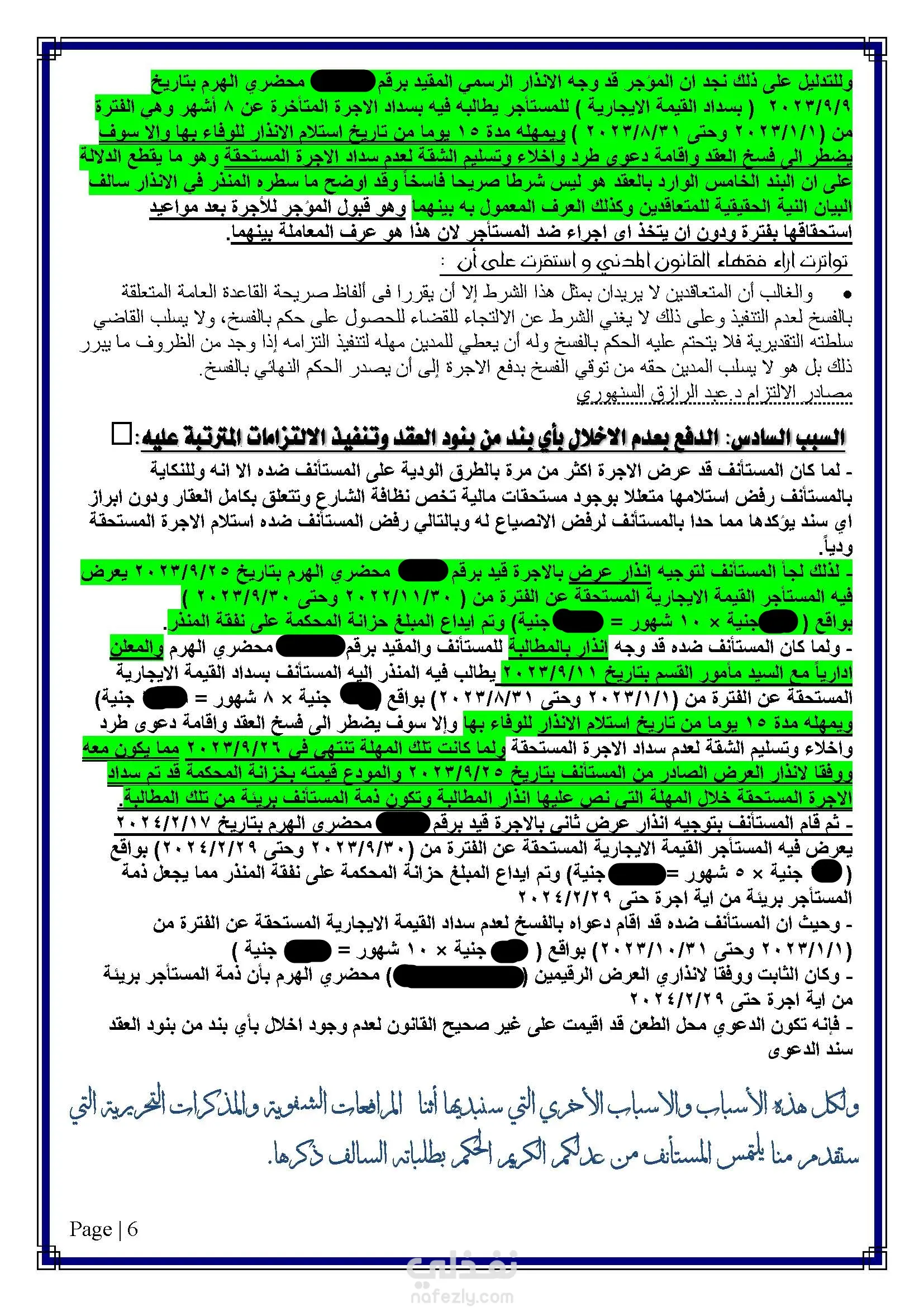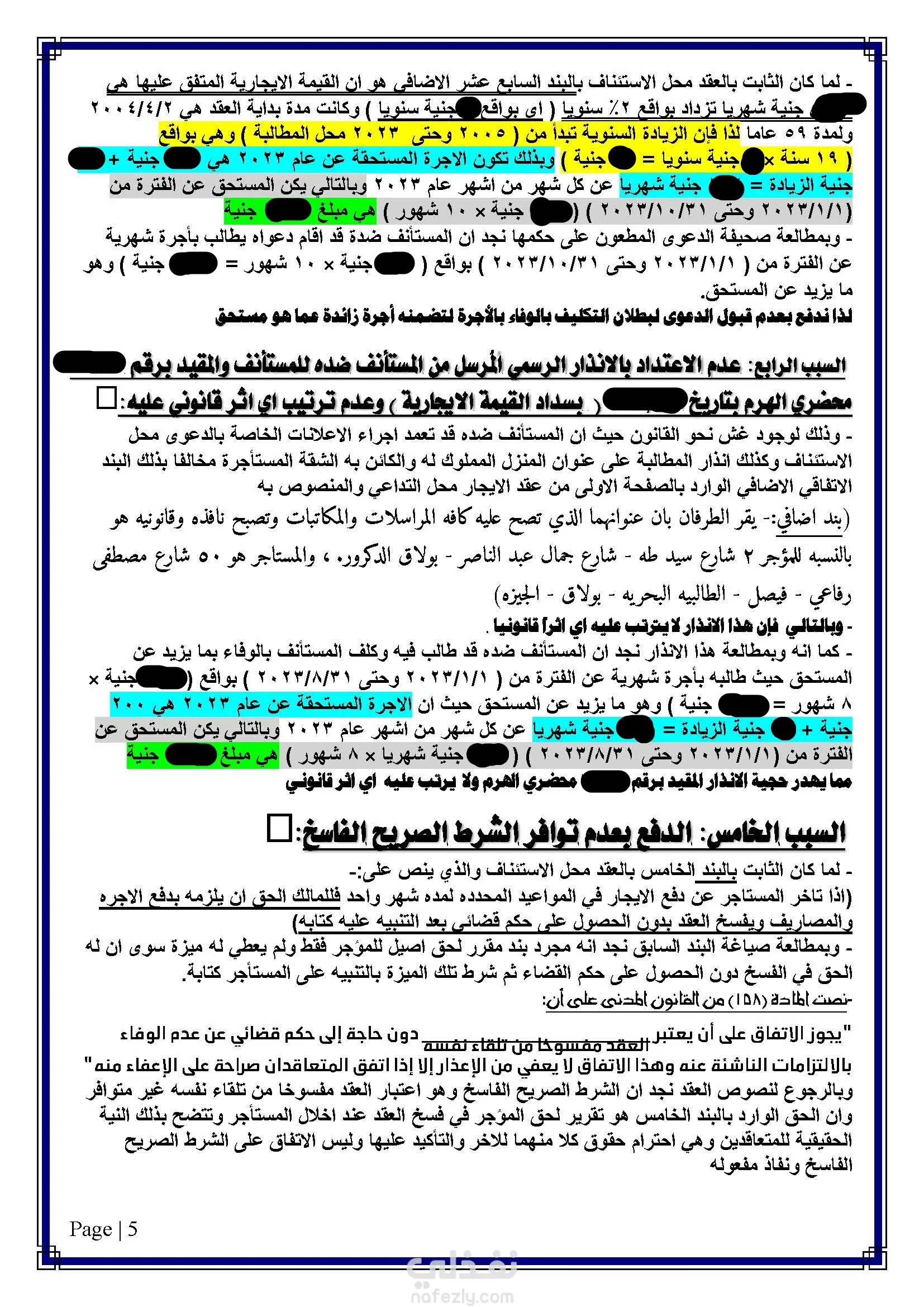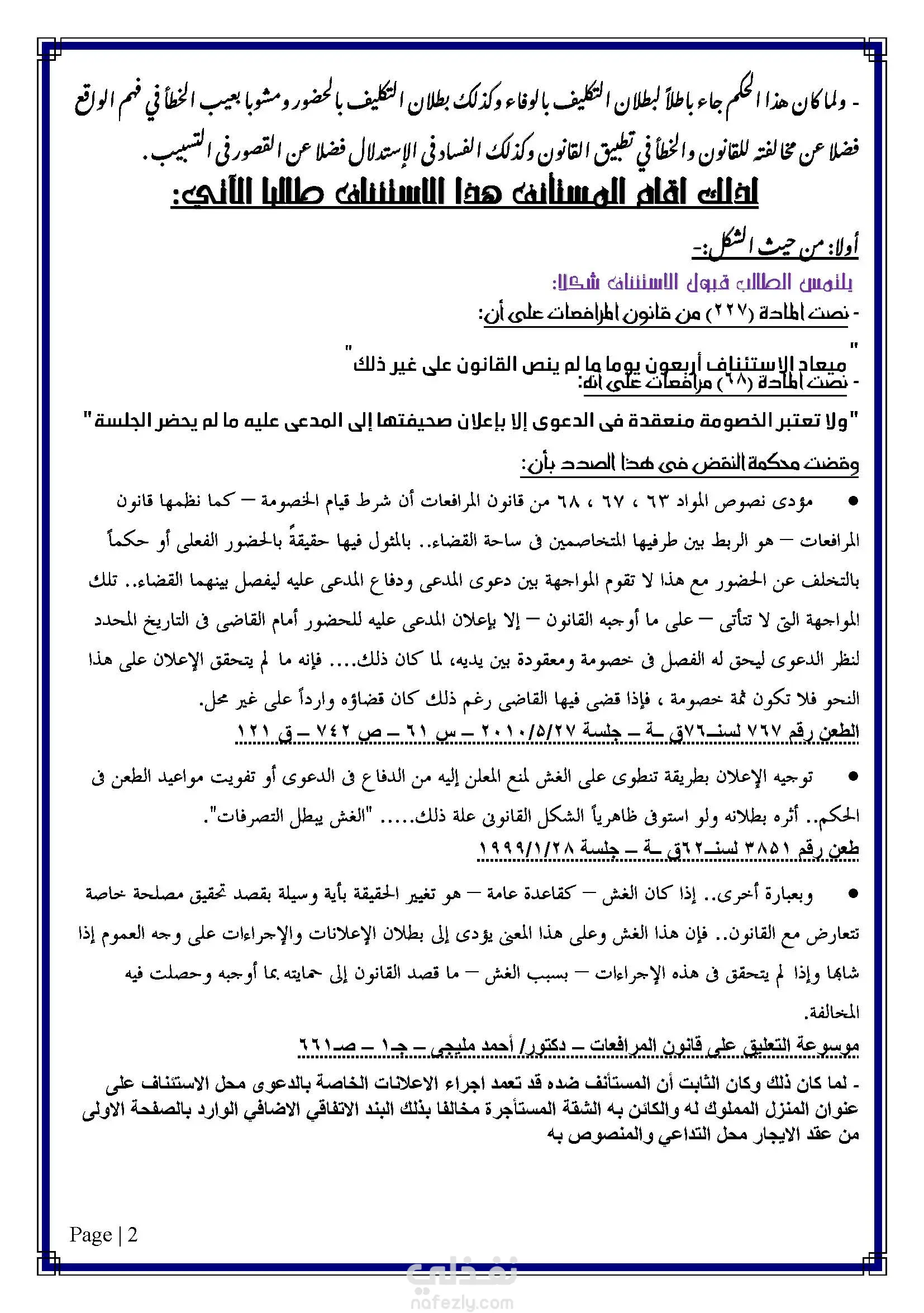 صحيفة طعن بالاستئناف على حكم صادر بفسخ عقد ايجار مدته 59 سنة