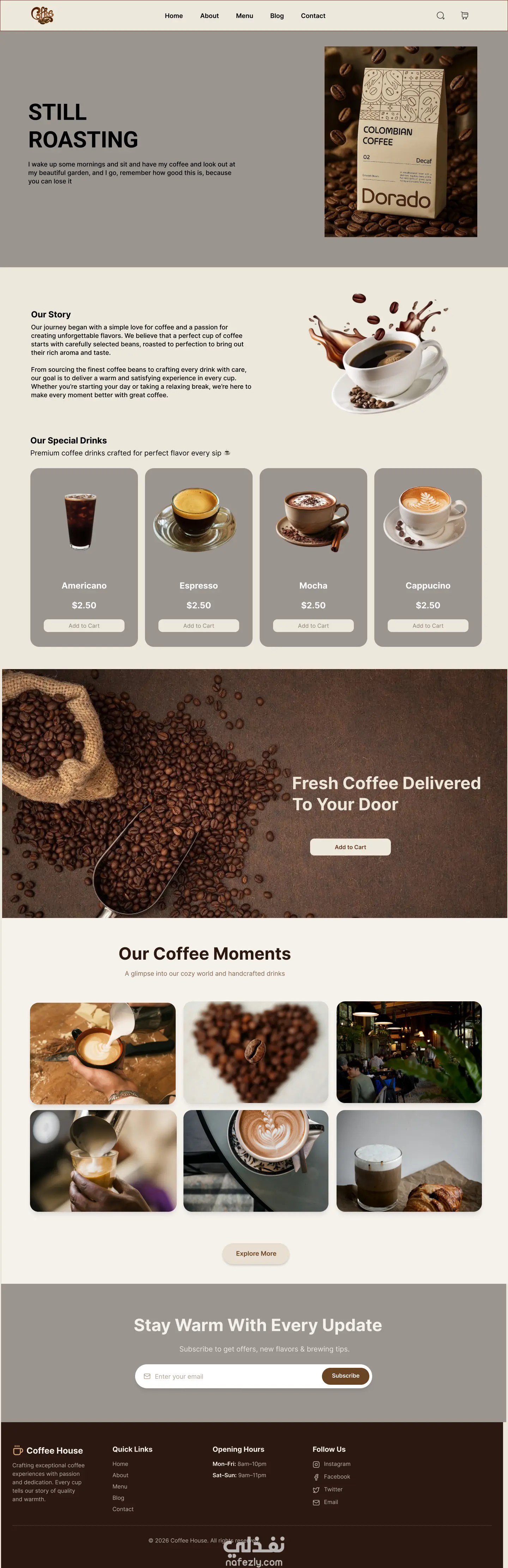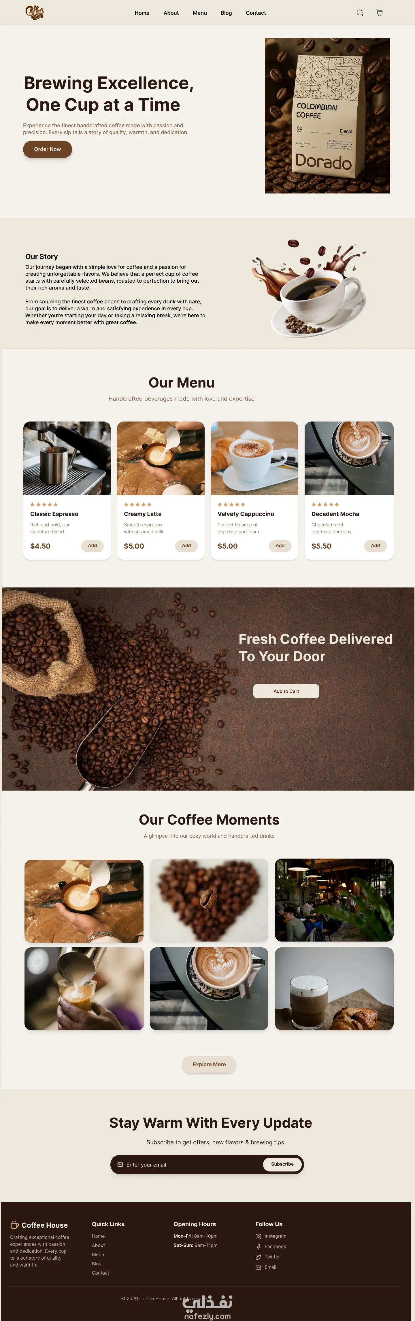 تم تصميم الصفحة وفقًا لمبادئ التصميم التحويلي (Conversion-Focused Design) بهدف تعزيز قرار الشراء، من خلال إبراز المنتجات الأكثر طلبًا، واستخدام صور عالية الجودة تعكس هوية العلامة التجارية.