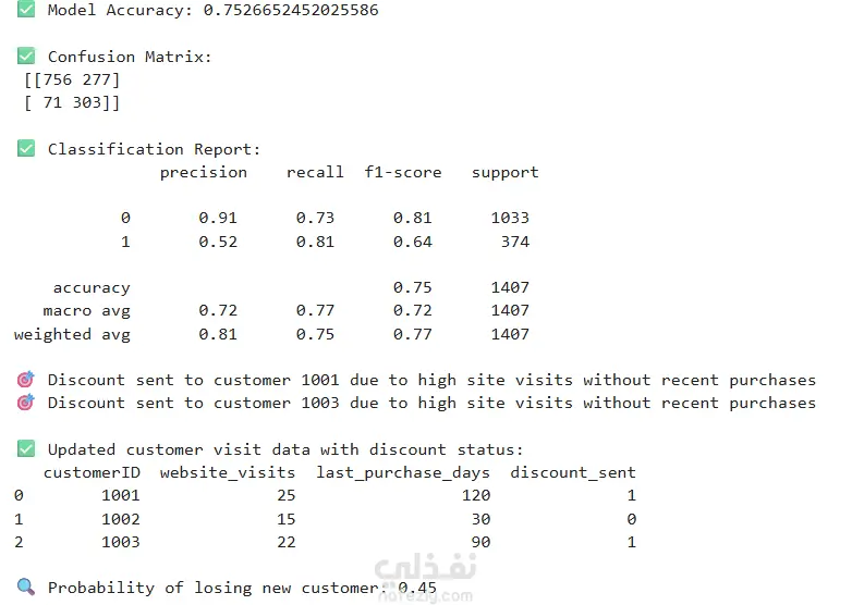 قمت بتنفيذ مشروع متكامل للتنبؤ بانسحاب العملاء (Customer Churn Prediction) بهدف مساعدة الشركات على تحديد العملاء المعرضين لترك الخدمة واتخاذ قرارات مبنية على البيانات للحفاظ عليهم. بدأت بفهم البيانات وتحليل خصائص العملاء مثل مدة الاشتراك، نوع الخدمة، قيمة الفاتورة الشهرية، إجمالي المدفوعات، وطبيعة استخدام العميل. ثم قمت بتنظيف البيانات ومعالجة القيم المفقودة والتأكد من صحة أنواع البيانات، بالإضافة إلى تحويل المتغيرات الفئوية إلى متغيرات رقمية وتطبيق Feature Scaling لتحسين أداء النماذج. بعد ذلك أجريت تحليل بيانات استكشافي (EDA) لاكتشاف الأنماط والعوامل التي تؤثر على انسحاب العملاء، مع استخدام الرسوم البيانية لاستخراج Insights واضحة تساعد في فهم سلوك العملاء. انتقلت بعد ذلك إلى مرحلة هندسة الخصائص واختيار أهم المتغيرات المؤثرة على التنبؤ، ثم قمت ببناء عدة نماذج تصنيف مثل Logistic Regression و Random Forest لمقارنة الأداء واختيار النموذج الأفضل. استخدمت مقاييس تقييم متعددة مثل Accuracy و Precision و Recall و F1-Score و Confusion Matrix مع التركيز على تقليل فقدان العملاء الحقيقيين (False Negatives). كما قمت ببناء Machine Learning Pipeline متكاملة تشمل مراحل المعالجة والتدريب والتقييم، مما يسهل إعادة استخدام النموذج وتطبيقه على بيانات جديدة. وفي النهاية استخدمت تقنيات تحسين الأداء مثل Cross Validation و Hyperparameter Tuning للوصول إلى أفضل دقة ممكنة وتحسين قدرة النموذج على التعميم. المشروع يعكس قدرتي على تحليل بيانات العملاء، بناء نماذج تنبؤية فعالة، واستخراج Insights عملية تساعد الشركات على تقليل معدل انسحاب العملاء وزيادة الاحتفاظ بهم.