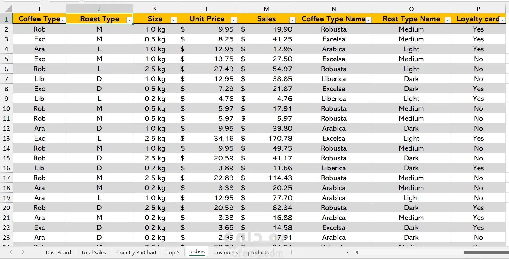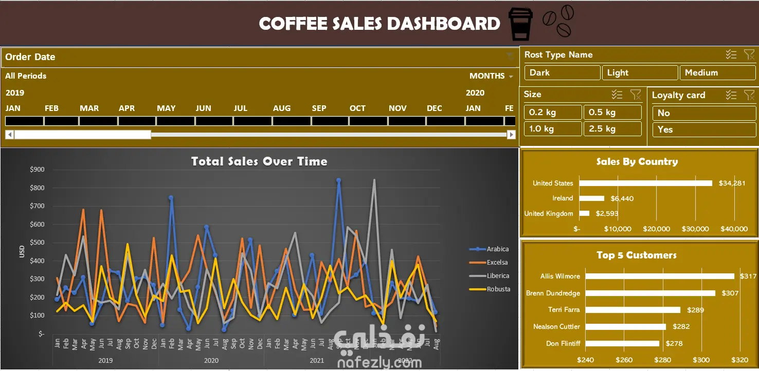 لوحة تحكم تفاعلية لتحليل مبيعات القهوة "Interactive Coffee Sales Dashboard"