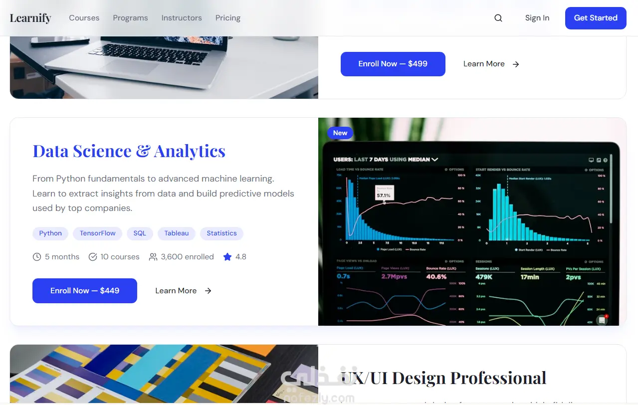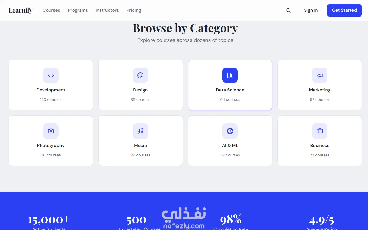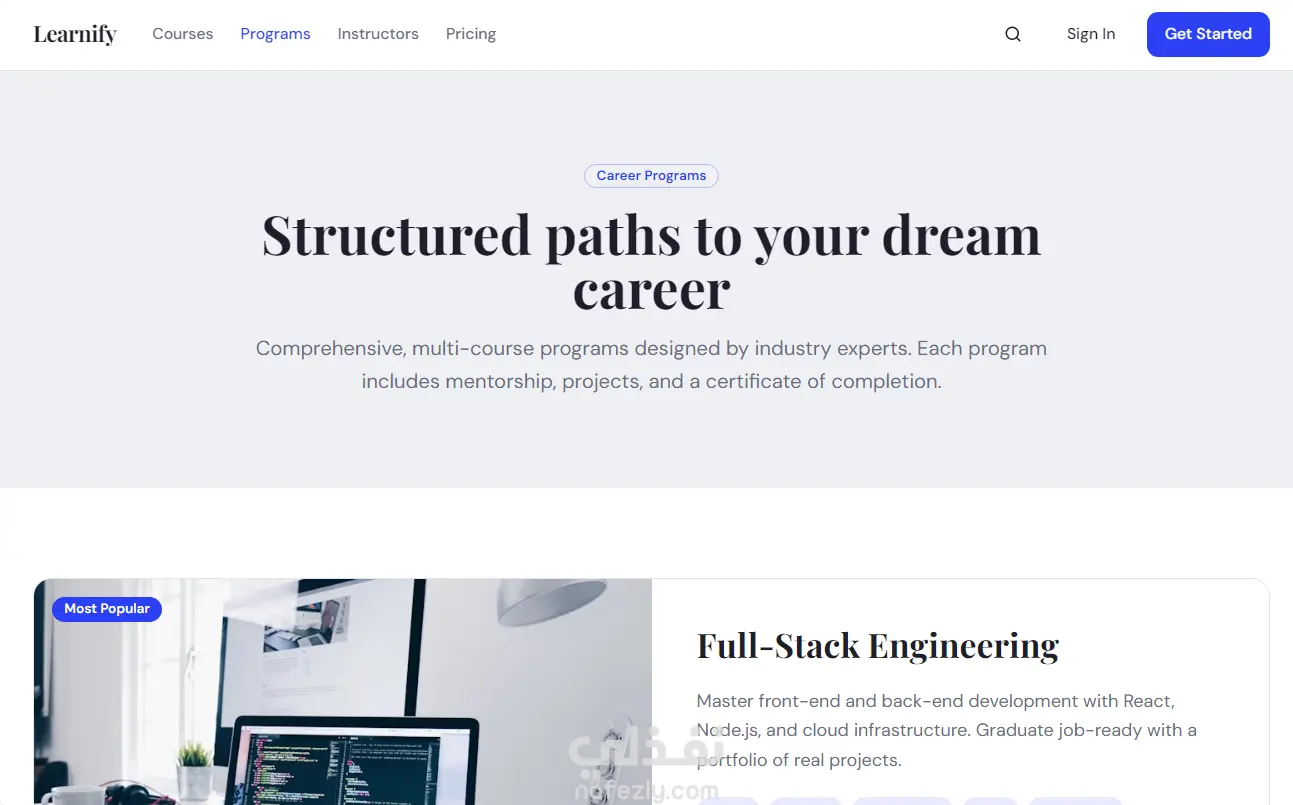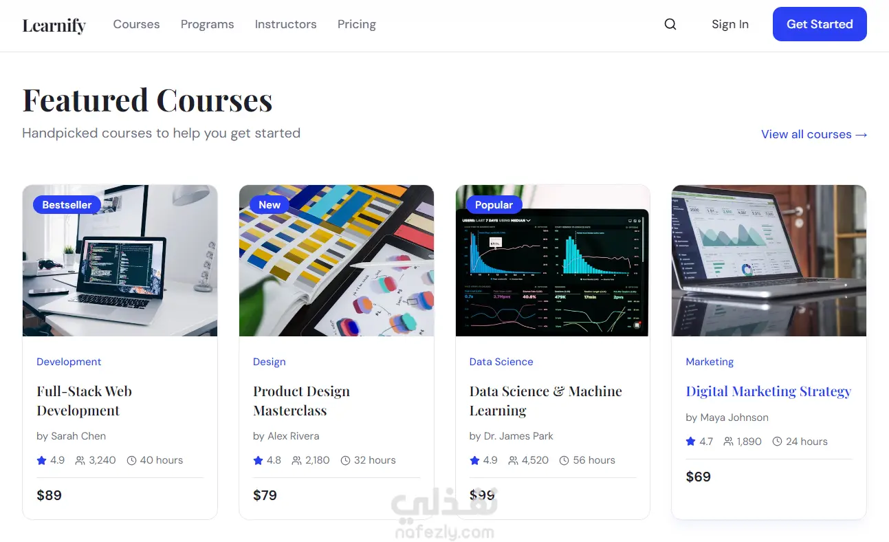 مشروع "Learnify" هو واجهة أمامية (Front-end) لمنصة تعليمية متطورة. قمت في هذا المشروع بتحويل التصميم إلى كود برمجي عالي الجودة، مع التركيز على الأداء السلس وتجربة المستخدم التفاعلية.