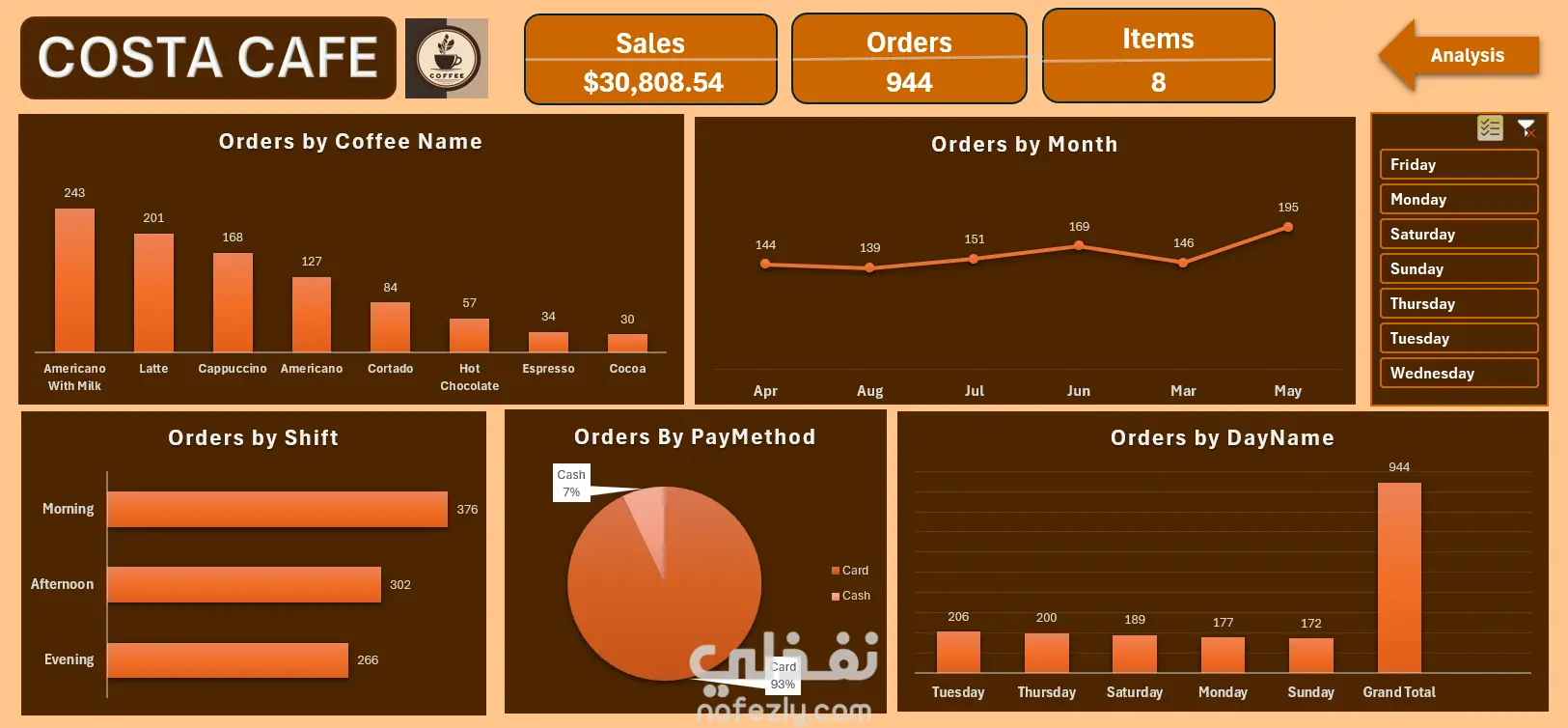 تحليل أداء المبيعات لمقهى
