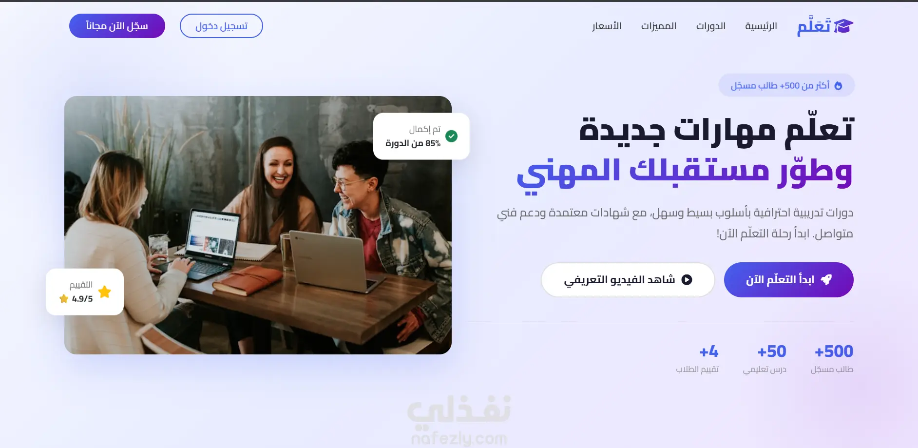 تصميم صفحة هبوط (Landing Page) احترافية لمنصة دورات تدريبية أونلاين