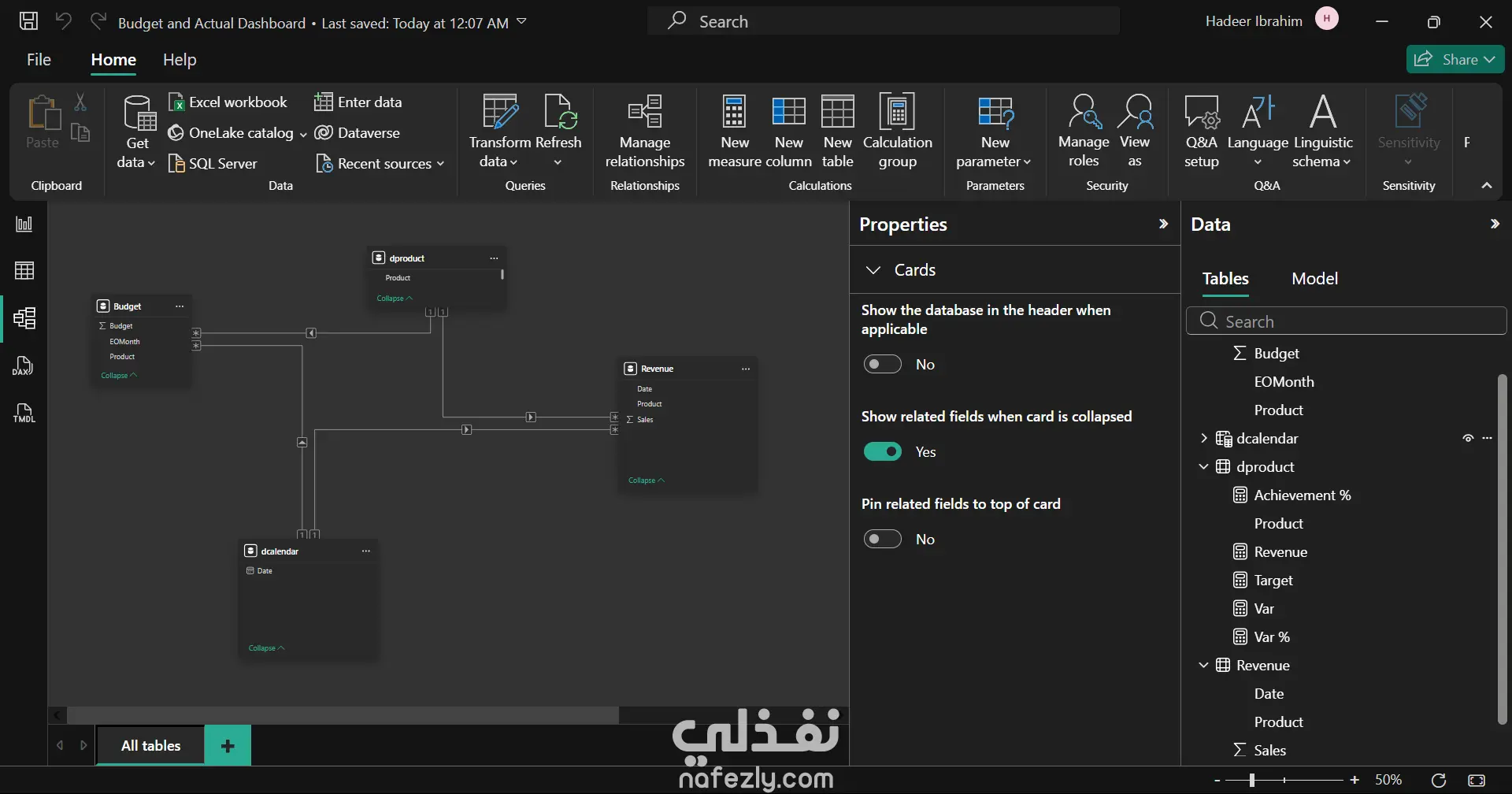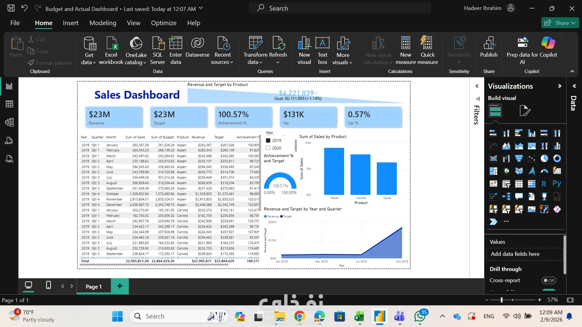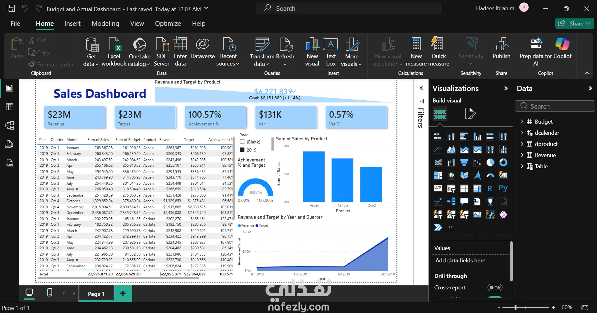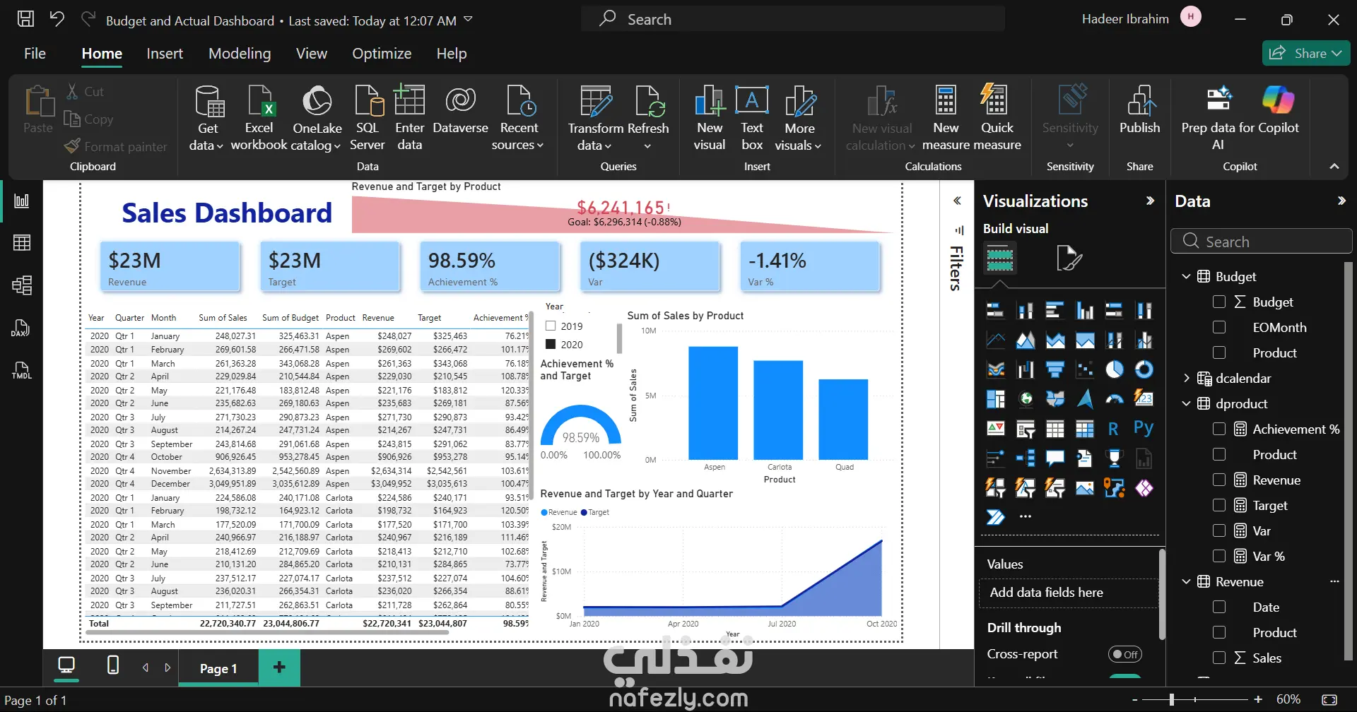 تصميم وتطوير لوحة بيانات تفاعلية وشاملة لمراقبة أداء المبيعات، تهدف إلى تقديم رؤى تعتمد على البيانات (Data-Driven Insights) لمساعدة الإدارة في اتخاذ قرارات استراتيجية دقيقة. تم بناء اللوحة لتعكس حالة العمل المالية ومقارنة النتائج المحققة بالمستهدفات الموضوعة بشكل لحظي. المميزات التقنية والتحليلية: مؤشرات الأداء الرئيسية (KPIs): تتبع حي للإيرادات (Revenue)، المستهدفات (Targets)، ونسبة الإنجاز (Achievement %) مع حساب الانحرافات المالية بدقة. التحليل المقارن: مقارنة أداء المنتجات المختلفة (مثل Aspen وCarlota) لتحديد المنتجات الأكثر ربحية. المراقبة الزمنية: تحليل اتجاهات المبيعات الشهرية والسنوية (Trend Analysis) باستخدام مخططات مختلطة (Combo Charts) لمتابعة التذبذب في الأداء. التفاعلية (Interactivity): إضافة فلاتر ذكية (Slicers) تتيح للمستخدم التنقل بين السنوات والشهور، مما يوفر تجربة مستخدم مرنة وسهلة. التصور البصري (Data Visualization): استخدام أدوات بصرية متقدمة مثل (Gauge Charts) و(Clustered Bar Charts) لتبسيط قراءة البيانات المعقدة.