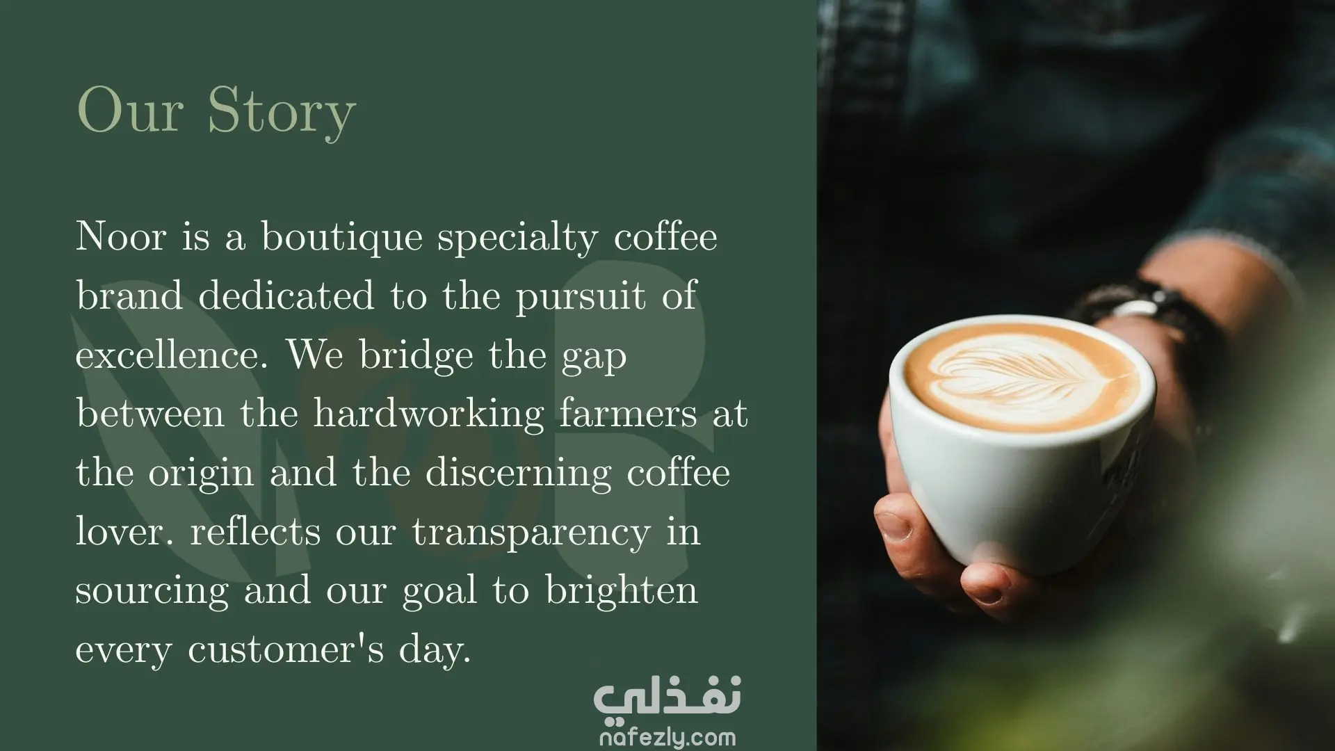 تصميم وكتابة ملف تعريف شركة (Company Profile) متكامل لبراند قهوة مختصة ( Noor)