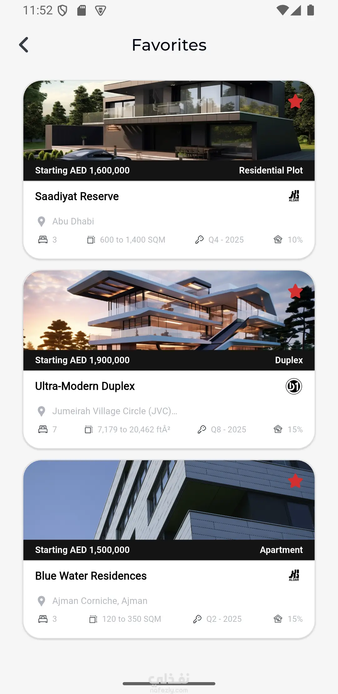 إمكانية حفظ العقارات المميزة في قائمة خاصة، مما يسهل على المستخدم العودة إليها والمفاضلة بينها لاتخاذ قرار شراء مدروس.