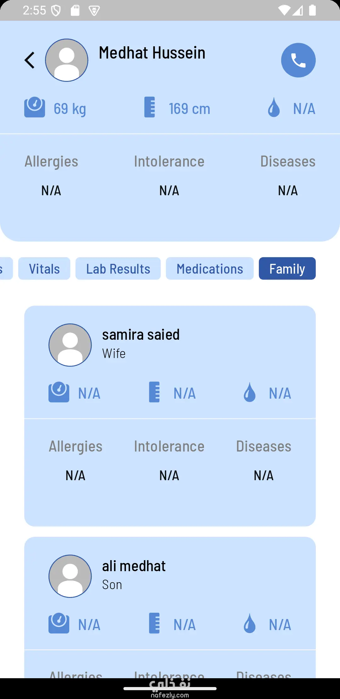 تسجيل المؤشرات الحيوية (Vitals Log) لمراقبة الحالة الصحية دورياً.