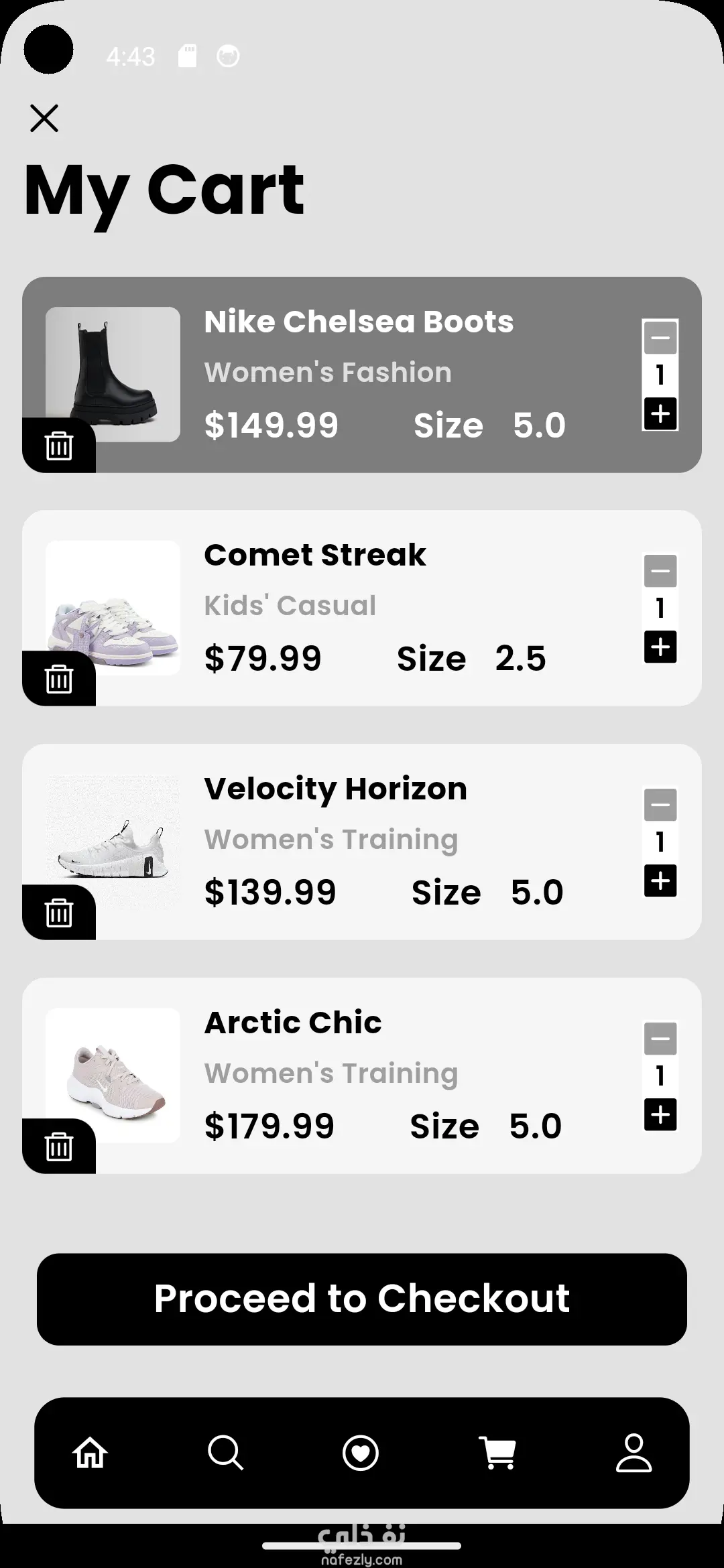 الوجهة المثالية لعشاق الأحذية الرياضية (Sneakerheads). يجمع التطبيق بين التصميم الأنيق وسهولة الاستخدام، ليوفر تجربة تسوق رقمية تضاهي المتاجر العالمية. تم التركيز في هذا المشروع على جعل رحلة المستخدم من "التصفح" إلى "الدفع" سريعة وممتعة، مع ضمان أداء عالٍ وسلاسة في التنقل.