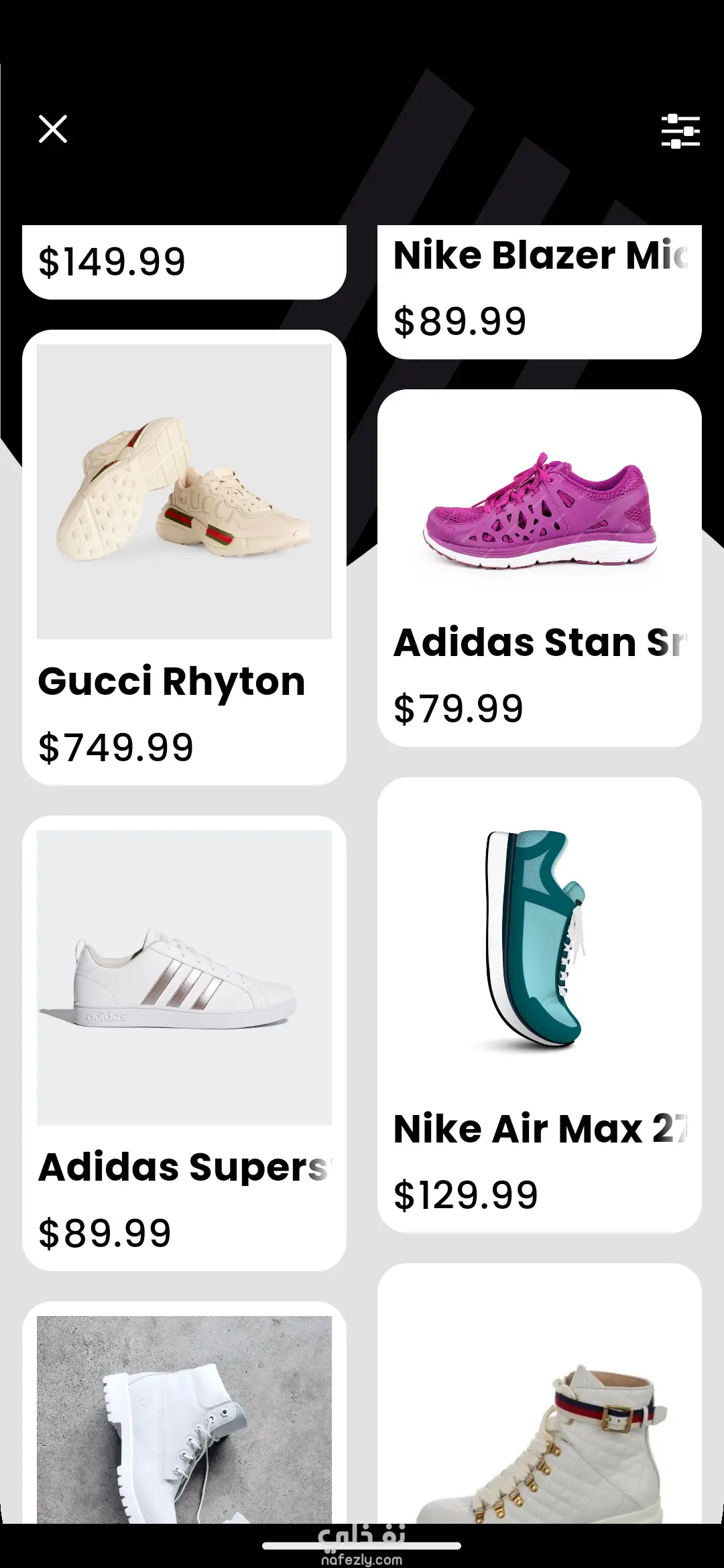 واجهة عرض ديناميكية تتيح للمستخدمين استكشاف أحدث إصدارات الأحذية الرياضية والأكثر رواجاً، مع صور عالية الجودة وتفاصيل دقيقة لكل منتج.