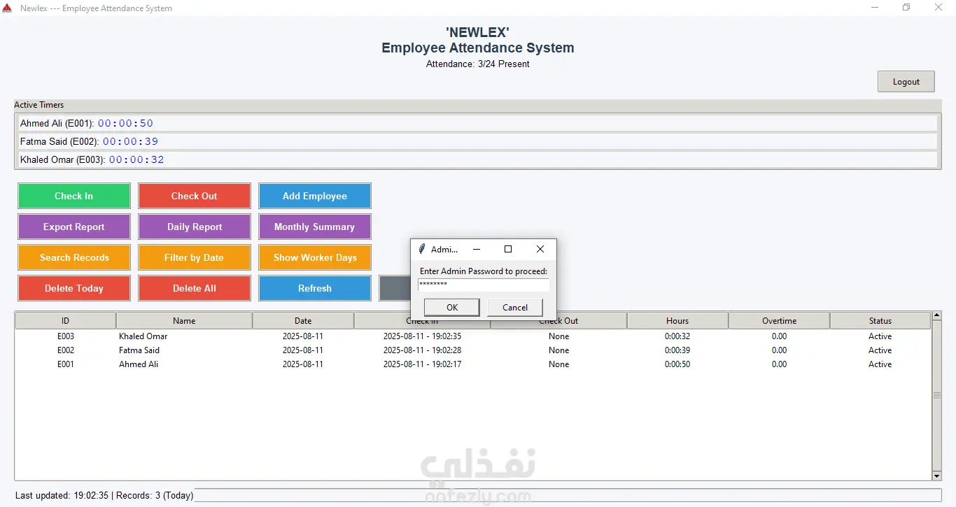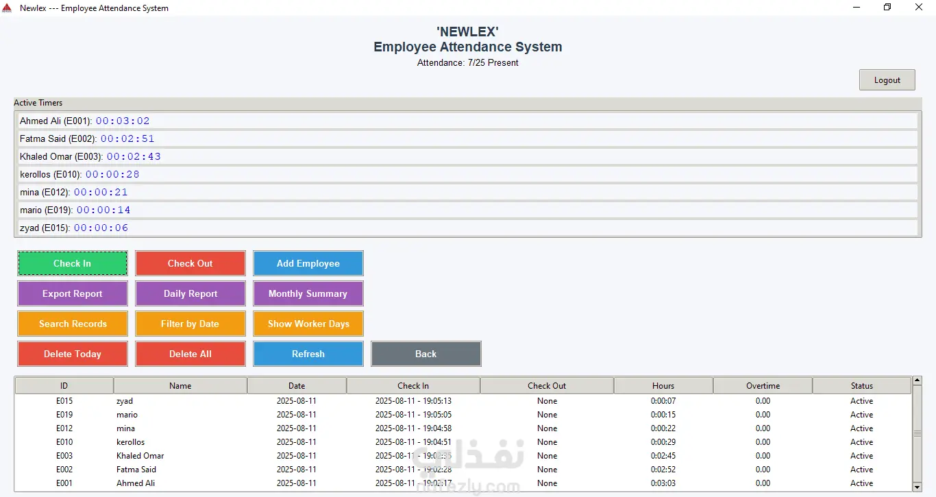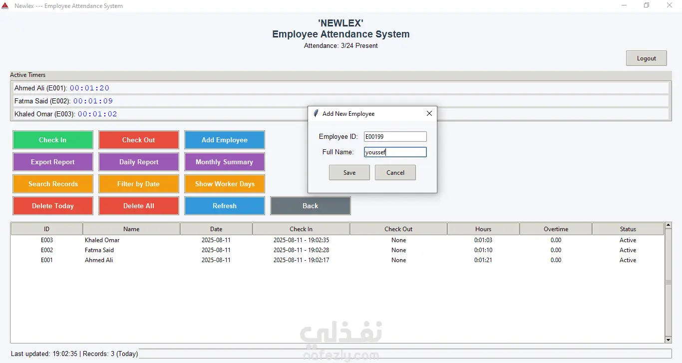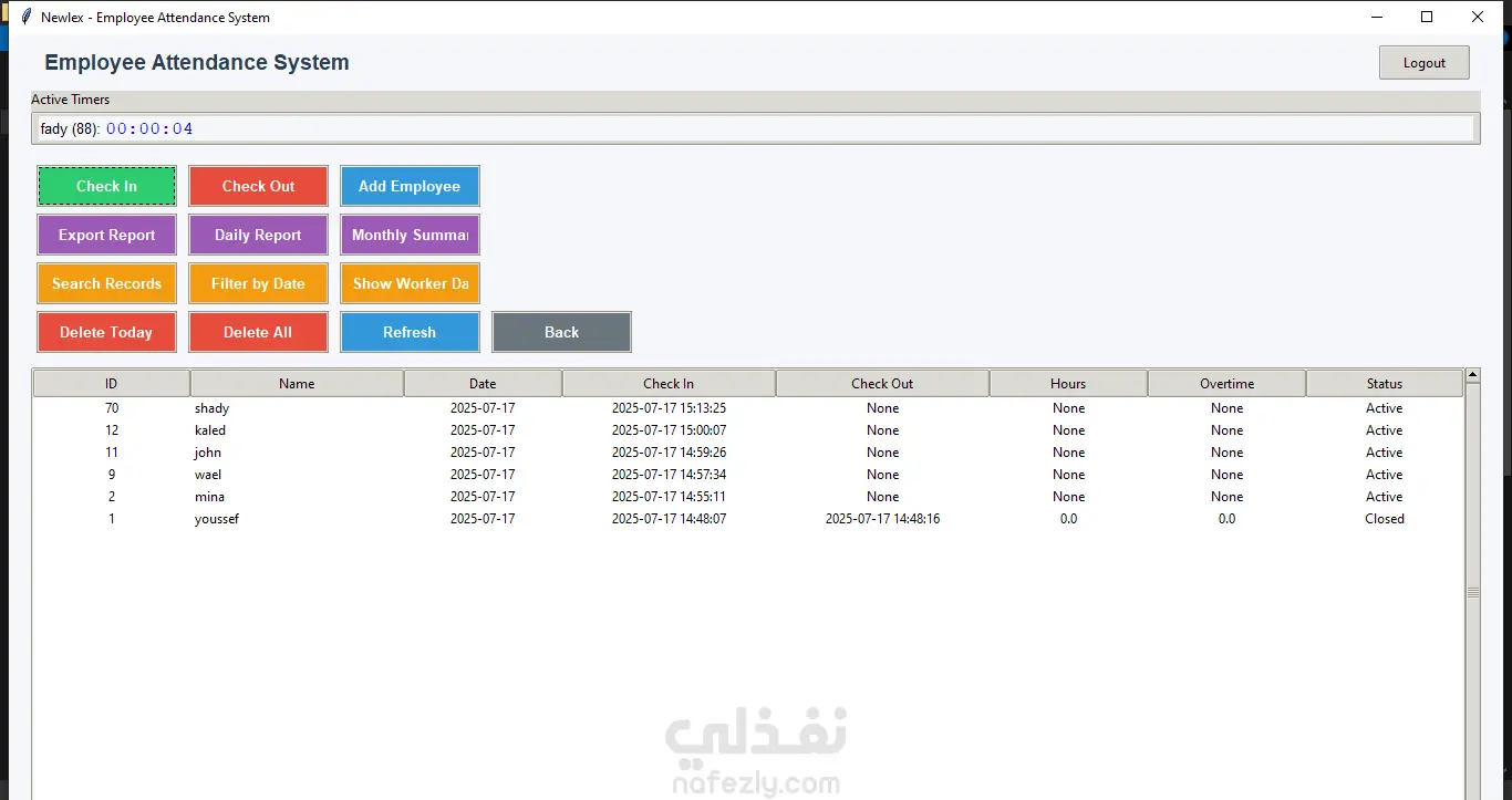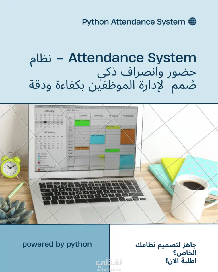 وصف الخدمة إنشاء برنامج حضور وانصراف متكامل بـ Python وواجهة احترافية (GUI) – قابل للتخصيص . ماذا سافعل؟ ... سأصمم لك برنامج حضور وانصراف احترافي مع جميع المميزات التي تحتاجها لإدارة الموظفين بكفاءة هل تريد برنامجًا يسجل حضور وانصراف الموظفين، يحسب الرواتب والأوفر تايم تلقائيًا، ويصدر تقارير جاهزة بضغطة زر؟ سأقوم ببرمجة تطبيق سطح مكتب متكامل باستخدام Python وSQLite مع واجهة رسومية جذابة وسهلة الاستخدام. مميزات البرنامج: تسجيل الحضور والانصراف بالوقت والتاريخ. عرض فوري لعدد الحاضرين والغياب. البحث باسم الموظف أو ID. تصدير البيانات إلى CSV وExcel. حماية من تكرار الإدخالات. إمكانية حذف بيانات يوم محدد أو جميع البيانات مع تأكيد. تصميم احترافي وتنظيم الواجهة. عدد صفحات الموقع 2 لا يتم تسليم الكود مع البرنامج يتم تسليم البرنامج مضغوض فقط مميزات الخدمه مميزات البرنامج: تسجيل الحضور والانصراف للموظفين بسهولة. عرض قائمة الحضور اليومية بشكل منظم. البحث عن موظف محدد وعرض كل سجلاته السابقة. إمكانية إضافة موظفين جدد مباشرة من البرنامج. مسح سجلات يوم معين مع رسالة تأكيد للحماية من الحذف بالخطأ. تصدير البيانات لتقارير Excel أو CSV. ملخص شهري للحضور والانصراف. حساب ساعات العمل العادية والإضافية. حماية من تسجيل الموظف مرتين في نفس اليوم. تصميم واجهة سهلة الاستخدام تدعم اللغة العربية. ما الذي ستستلمه ... نسخة كاملة من برنامج الحضور والانصراف تعمل مباشرة على جهازك. قاعدة بيانات جاهزة للتشغيل والتجربة. ملف CSV وExcel لتخزين وتصدير البيانات. دليل استخدام مختصر لشرح طريقة التعامل مع البرنامج. دعم فني لمدة 7 أيام بعد التسليم لحل أي مشاكل أو استفسارات عن هذا البرنامج البرنامج الذي فلمعرض هة برنامج حقيقي يعمل كل يوم في مصنع لإدارة اكثر من 500 عامل يومياً و إدارة لحسابات و الحضور والانصراف و الغياب تعمل بكل دقه و يوجد نسخ احتياطي. كلما كانت التفاصيل أوضح، كان التنفيذ أسرع وأدق. أنا جاهز أبدأ فور استلام التفاصيل
