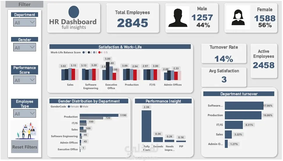 تحليل بيانات الموارد البشرية ولوحة تحكم تفاعلية باستخدام Power BI