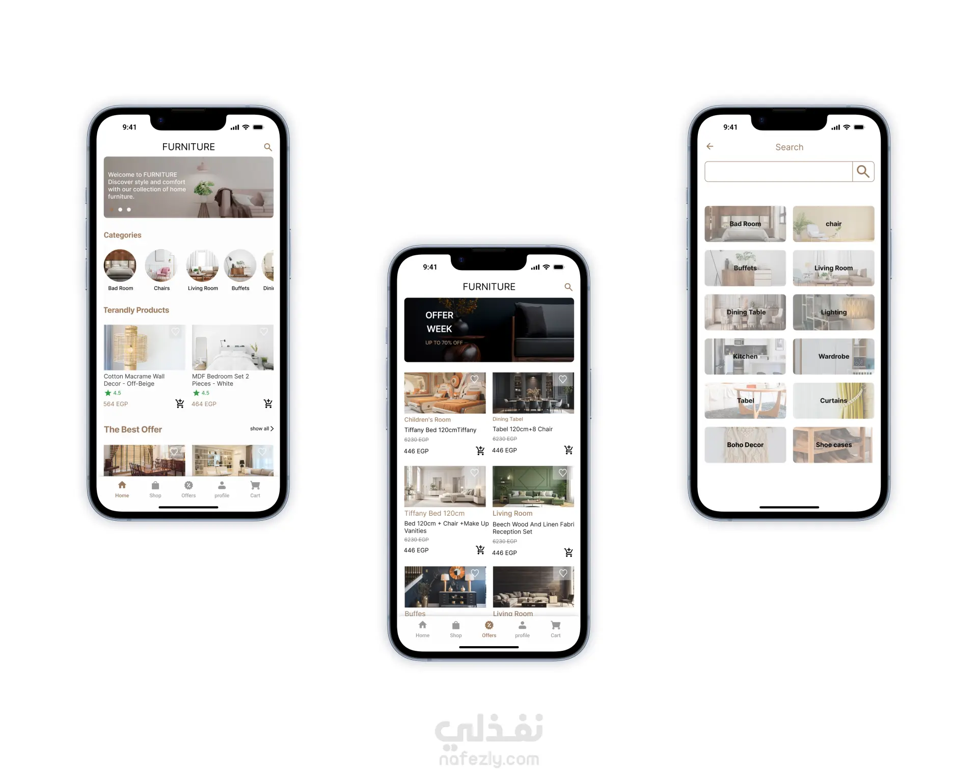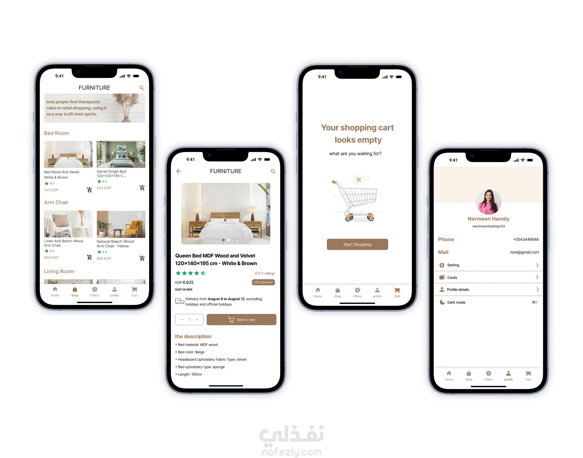 المشروع عبارة عن تطبيق للتسوق الإلكتروني للأثاث المنزلي، تم تصميمه لتوفير تجربة استخدام سهلة، سريعة، وممتعة للمستخدمين. يركّز التطبيق على تمكين المستخدم من تصفّح وشراء الأثاث بسهولة من خلال واجهة مستخدم عصرية وتدفّق استخدام واضح ومنظّم. هدف المشروع هو تقديم تصميم متمحور حول المستخدم يبسّط عملية الشراء مع الحفاظ على المظهر الجمالي والأناقة البصرية. تم الاهتمام بعناصر قابلية الاستخدام، سهولة التنقل، والاتساق البصري بين شاشات التطبيق لضمان تجربة استخدام مريحة. ساعدني هذا المشروع على تطوير مهاراتي في تصميم واجهات المستخدم (UI)، تخطيط تدفّق المستخدم (User Flow)، وتحسين تجربة الاستخدام (Usability)، مع التركيز على تقديم حل عملي يلبي احتياجات المستخدمين.
