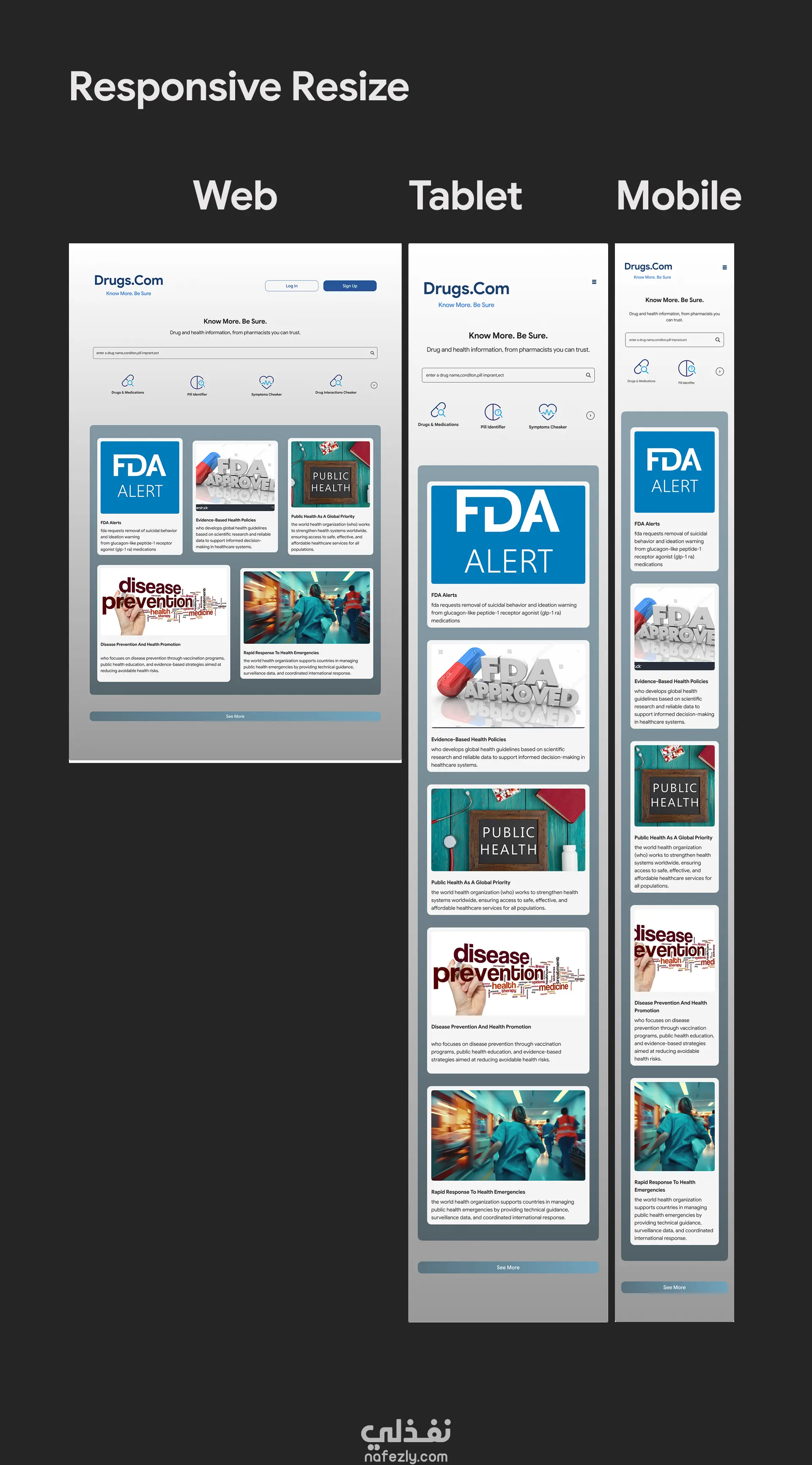إعادة تصميم واجهة مستخدم متجاوبة لموقع Drugs.com (Responsive Web Design)