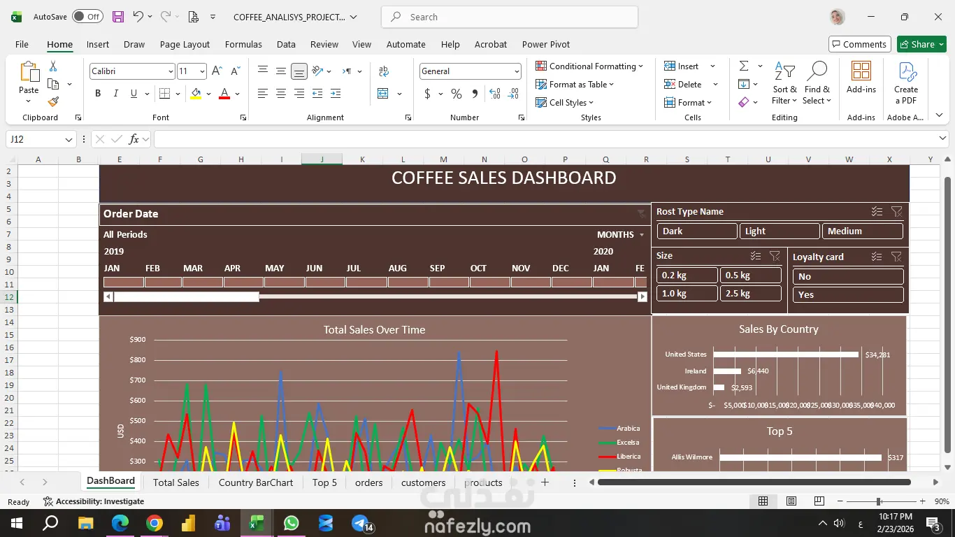 Tools: Excel Process: • Cleaned raw sales data • Created Pivot Tables • Built interactive dashboard KPIs: • Total Revenue • Monthly Sales Trend • Top-Selling Products • Sales by Region Impact: Improved visibility of sales performance and supported strategic decisions.