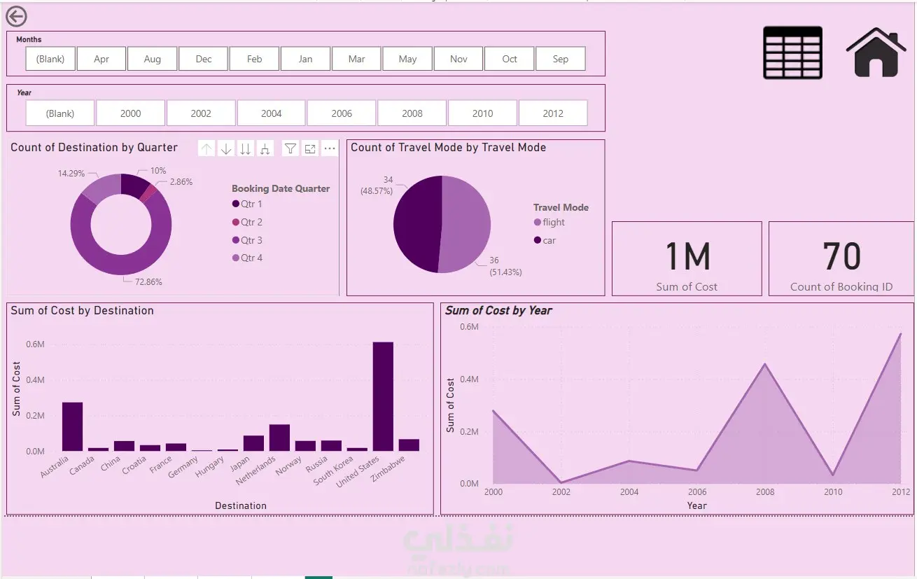 تحليل بيانات السفر والتكاليف السنوية